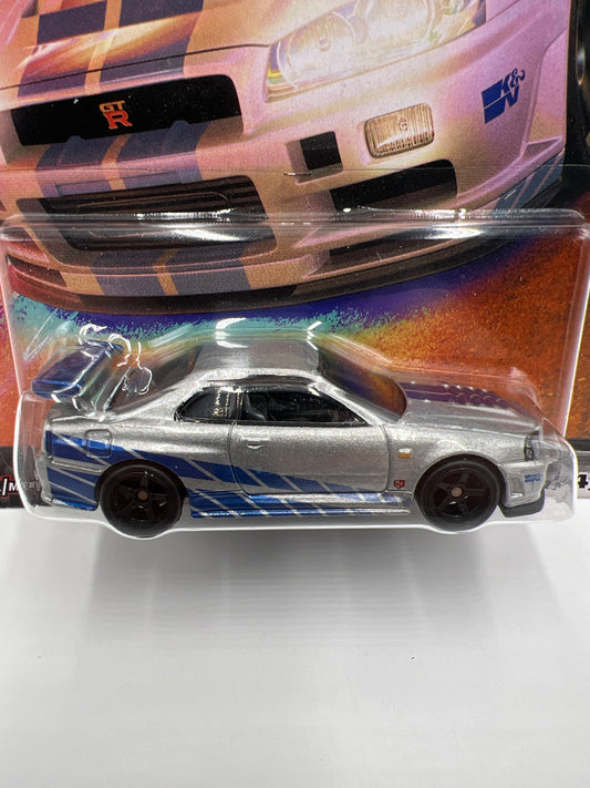 Hot Wheels Premium Fast & Furious #4 Nissan Skyline GT-R BNR34 Silver/Blue W/Protector