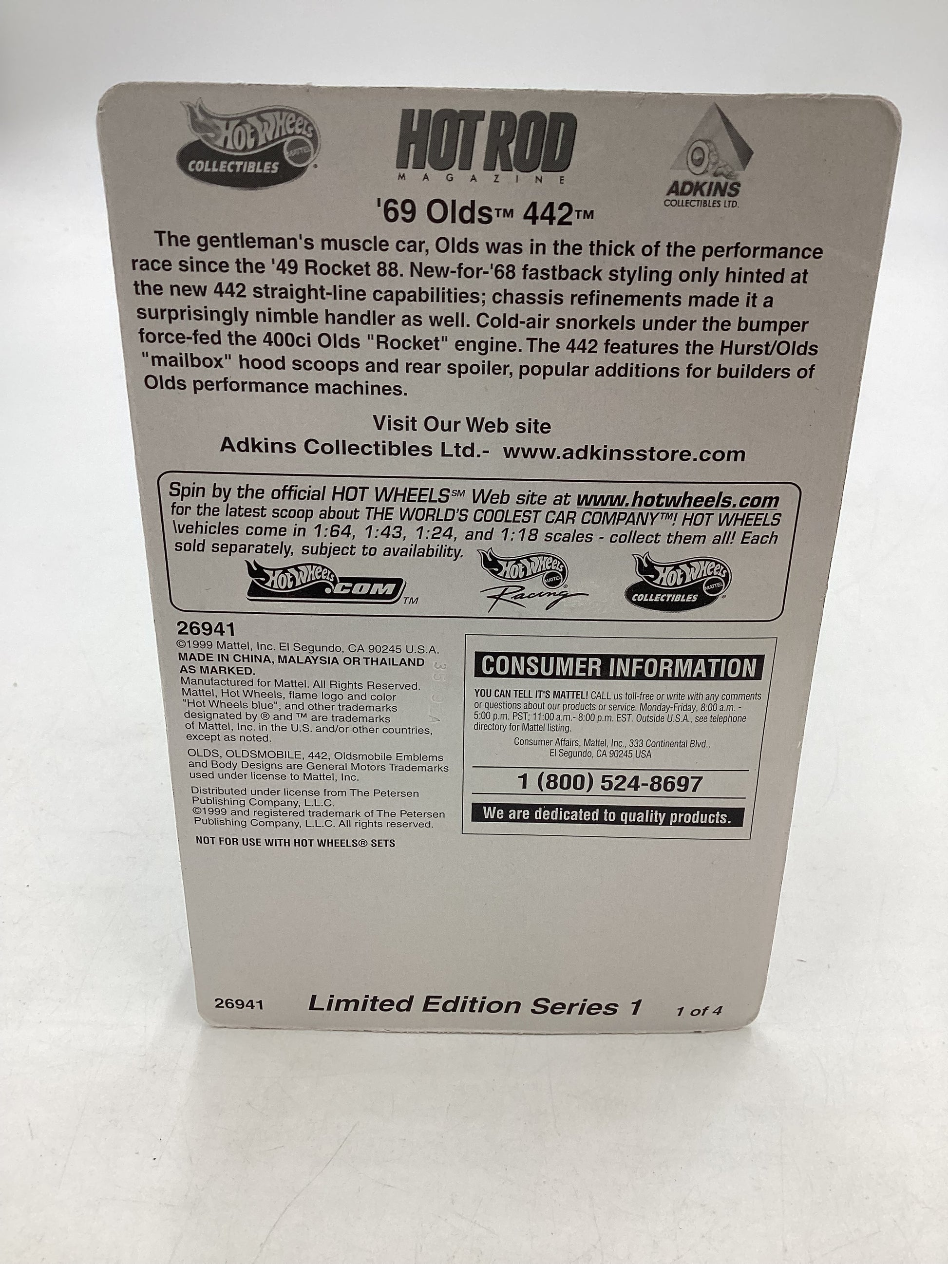 2000 Hot Wheels Street Machines Limited Edition 60s Olds 442 Red Series 1 with protector