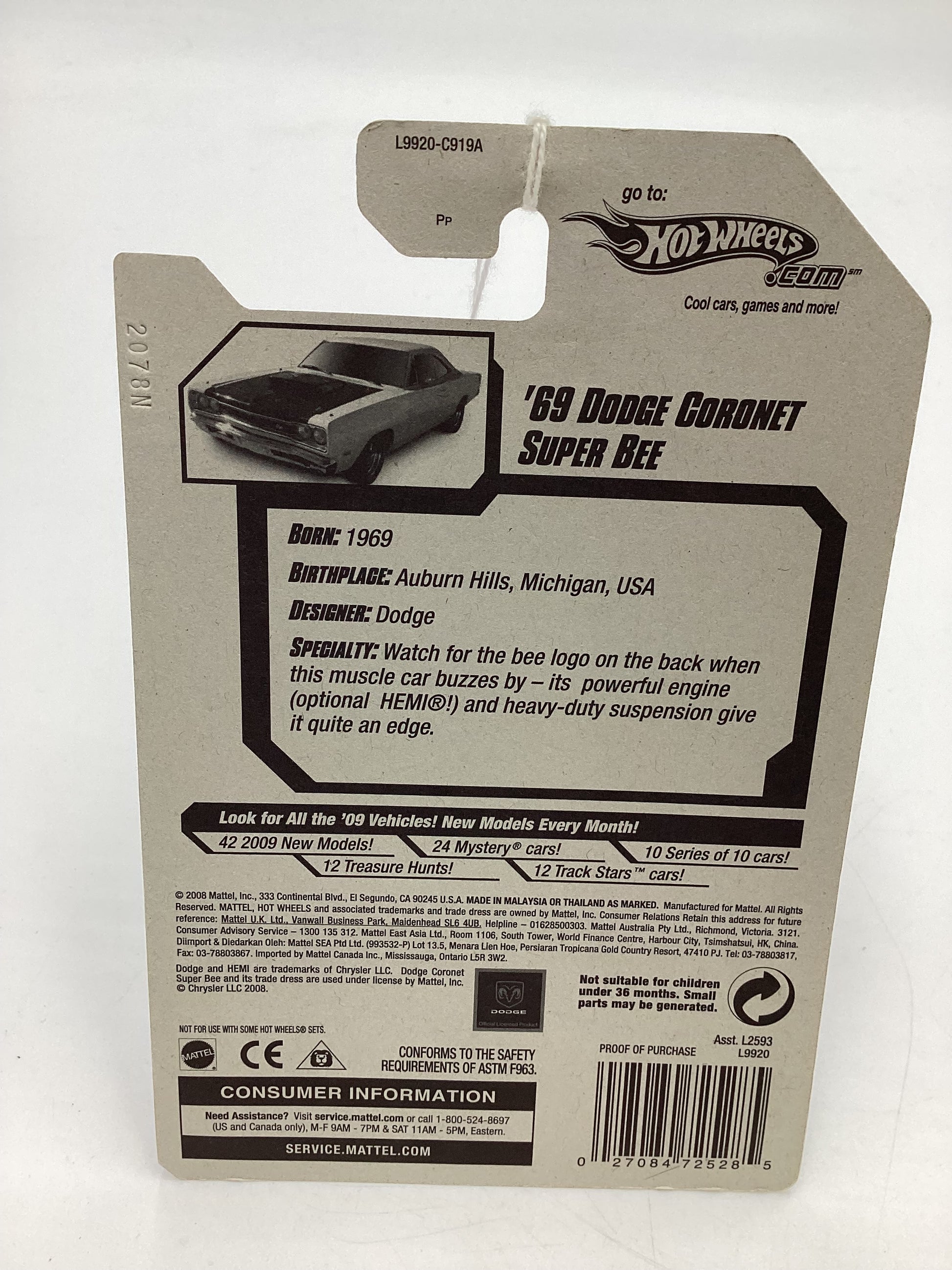 2008 Hot Wheels New Models #5 69 Dodge Coronet Super Bee Silver 54C