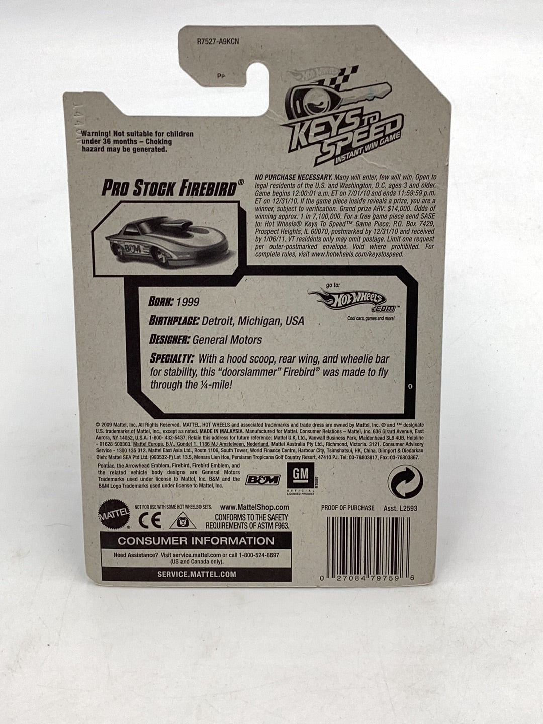 2010 Hot Wheels #102 Pro stock Firebird w/ twin mill III keychain Walmart exclusive 235G