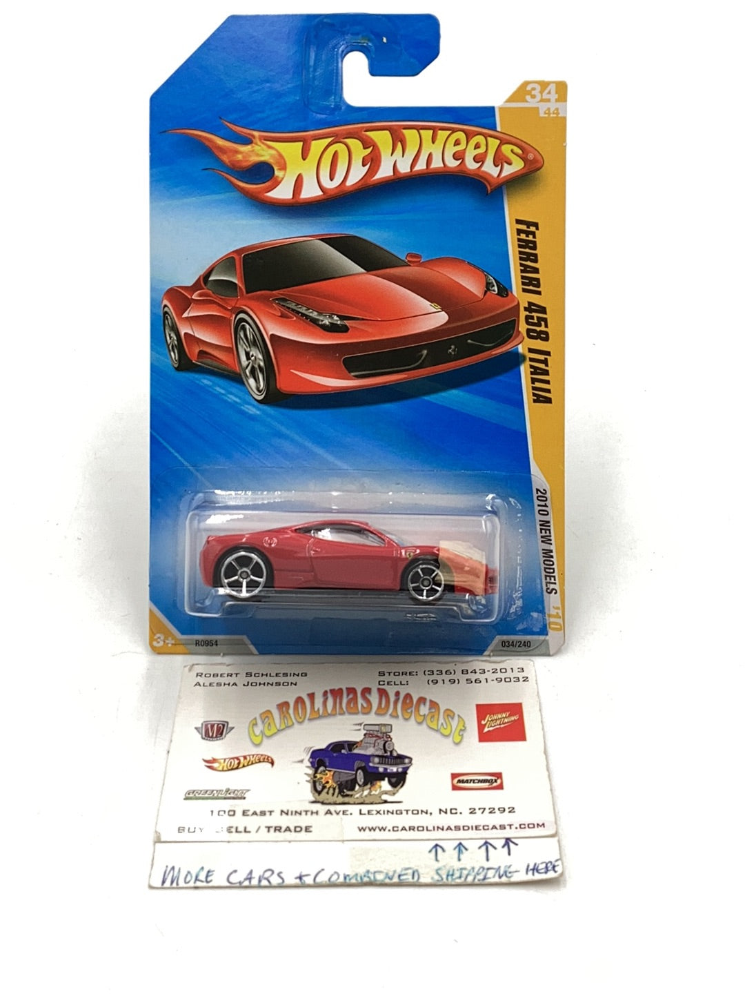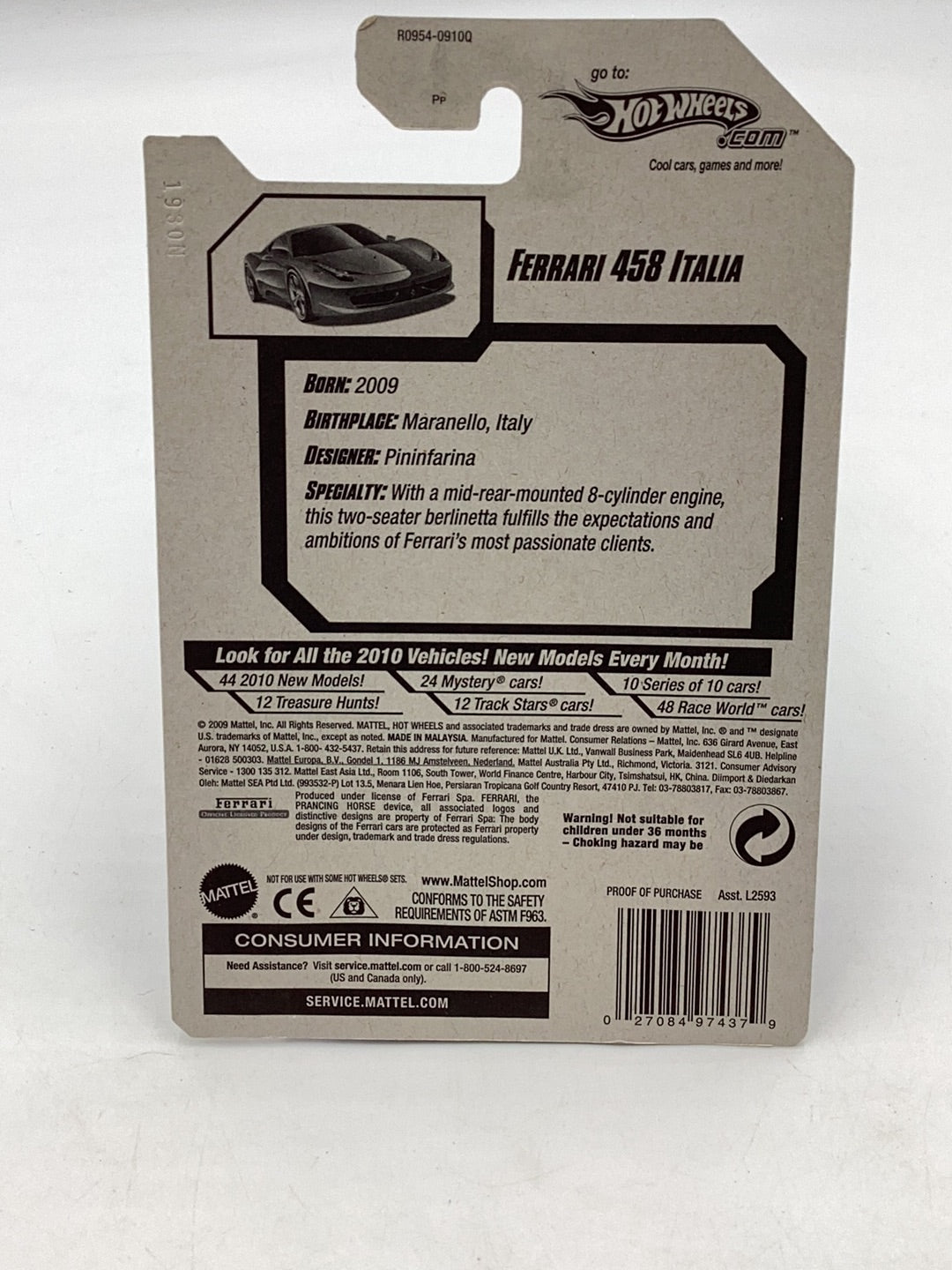 2010 Hot Wheels #34 Ferrari 458 Italia with protector