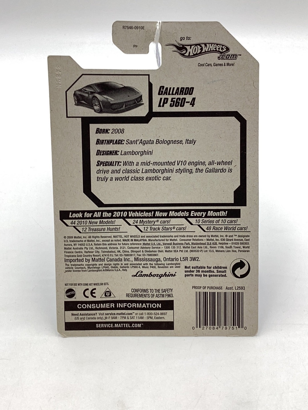 2010 Hot wheels All Stars #121 Gallardo LP 560-4 Black 102A