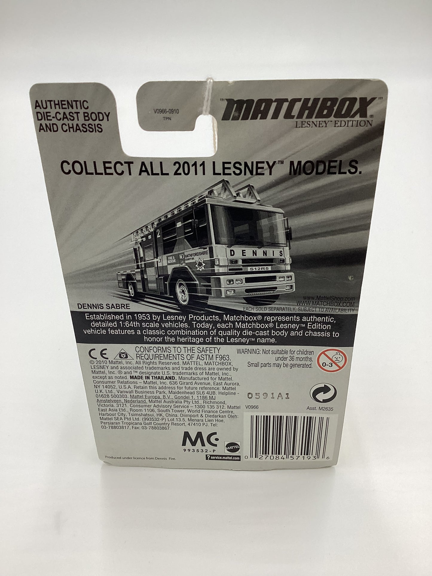 2011 Matchbox Lesley Edition Hathfordshire Dennis Sabre 173A