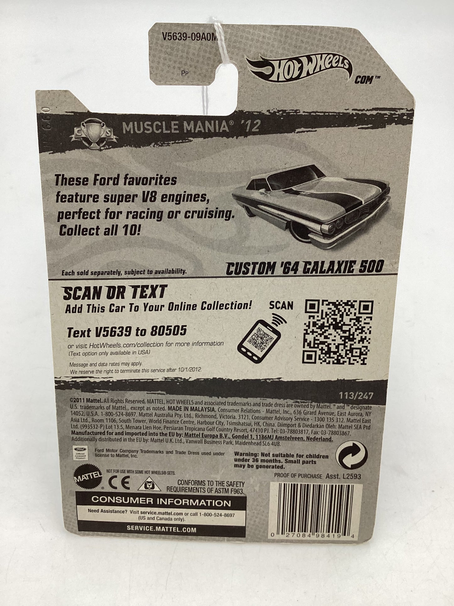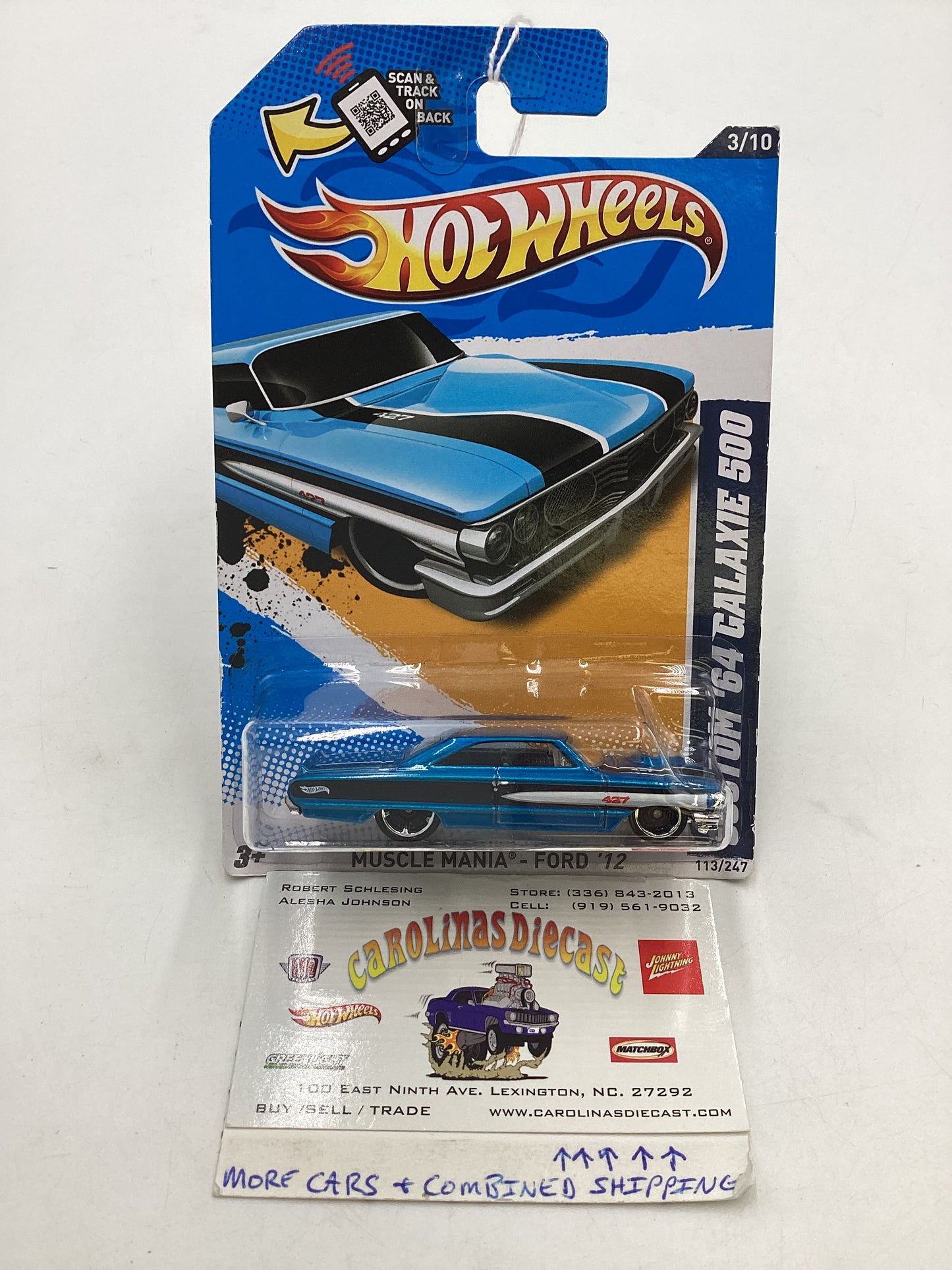 2012 Hot Wheels Muscle Mania Ford #113 Custom 64 Galaxie 500 Blue 24D