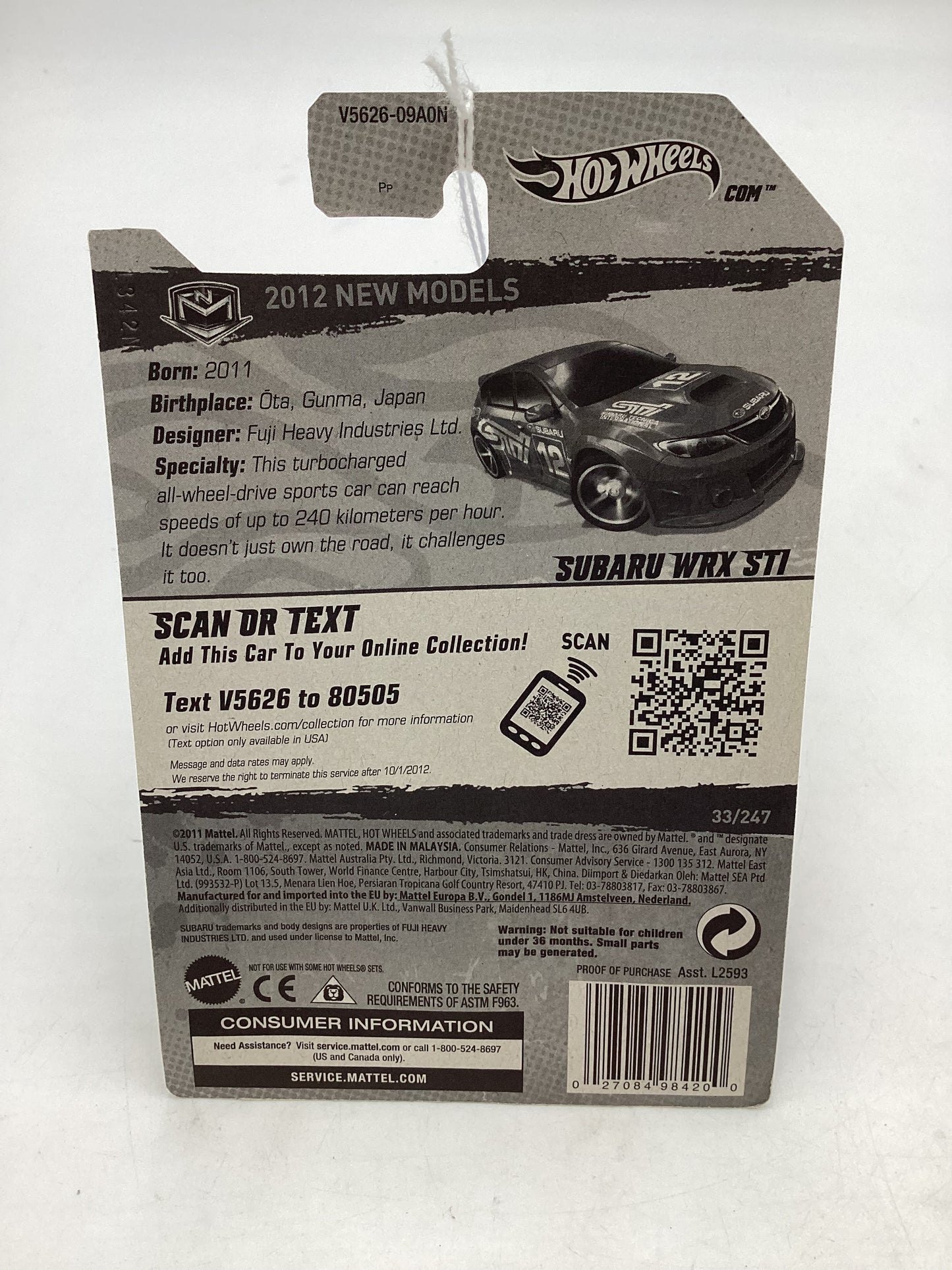 2012 Hot Wheels New Models #33 Subaru WRX STI Red 89B