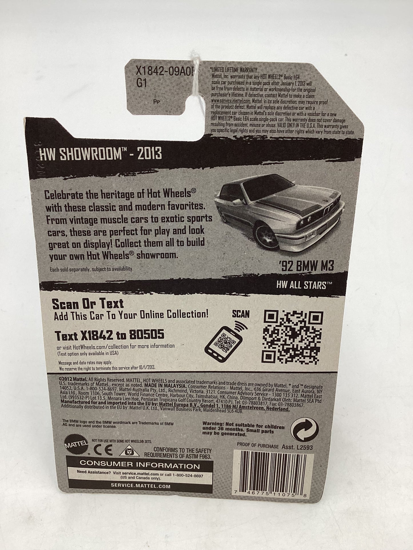 2013 Hot Wheels #172 HW Showroom 92 BMW M3 Silver 109H