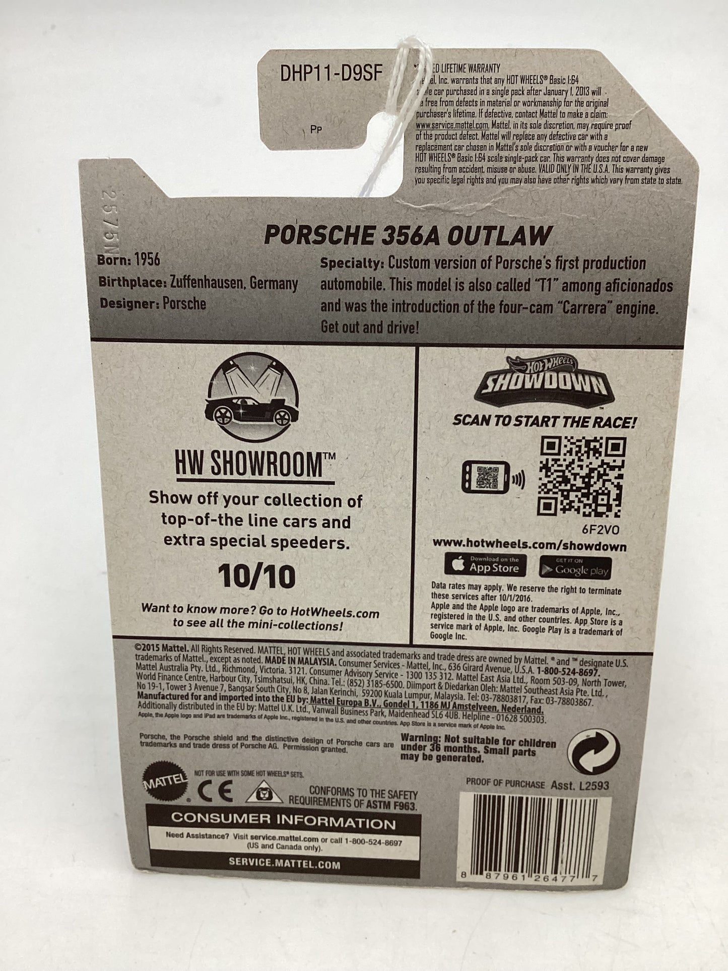 2016 Hot wheels Target Snowflake card #120 Porsche 365A Outlaw Black 238B *Vein on Back*