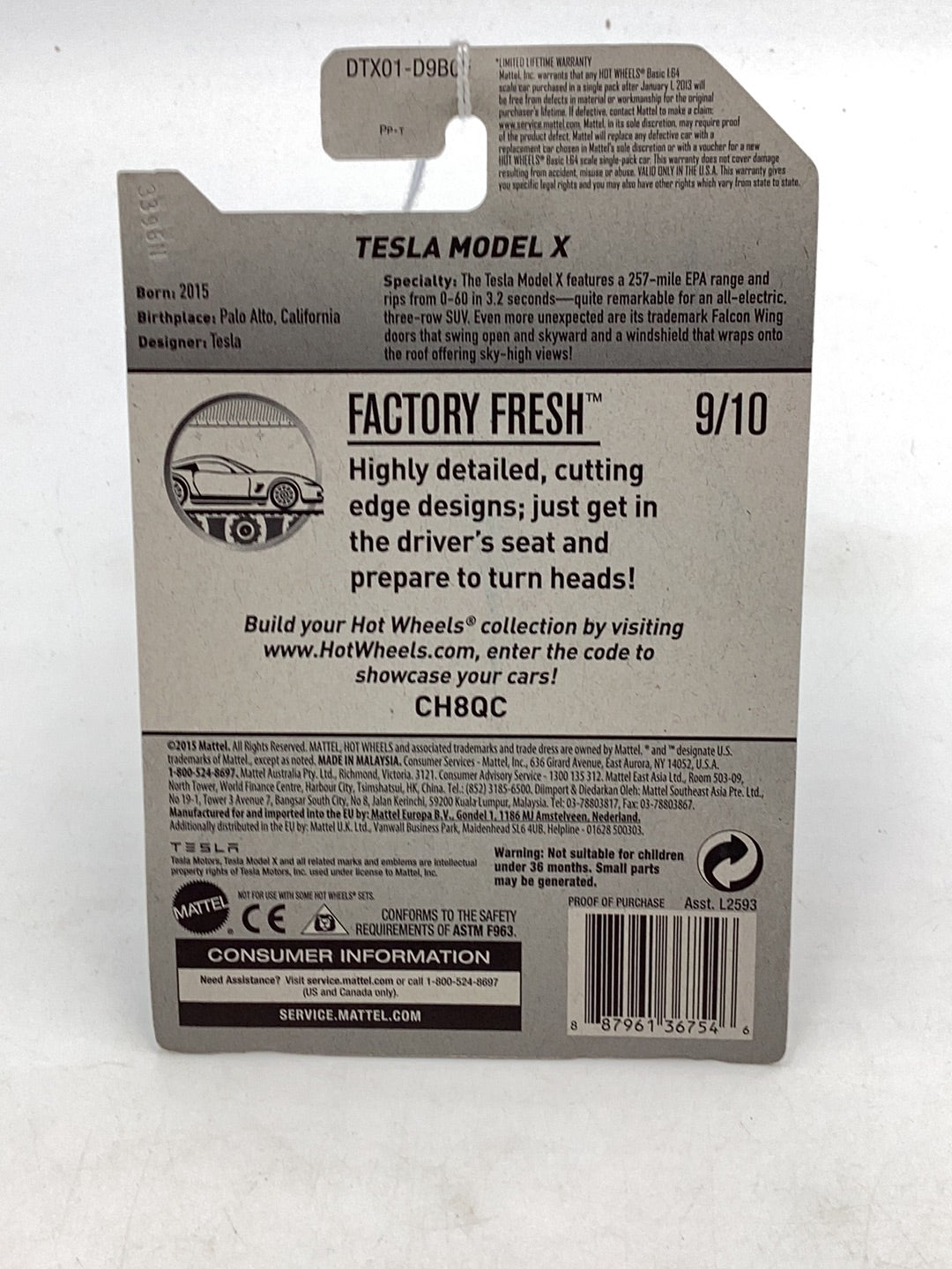 2017 Hot Wheels #97 Tesla Model X 50A