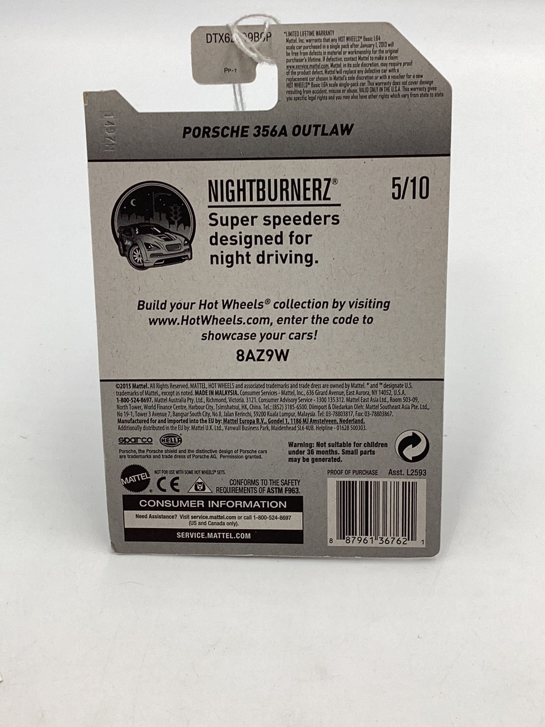 2017 Hot Wheels Nightburnerz #325 Porsche 356A Outlaw 98D