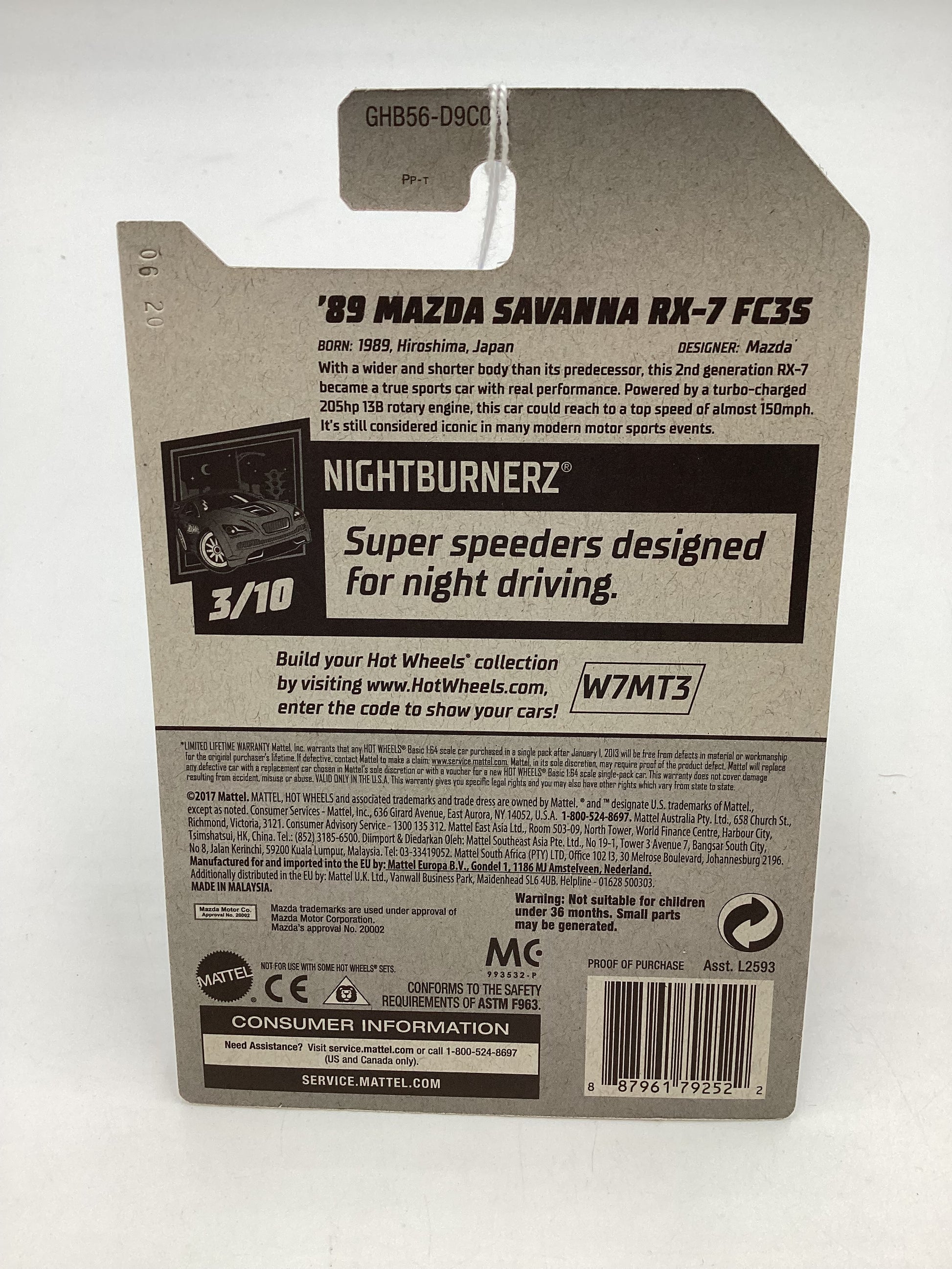 2020 Hot wheels Nightburnerz #223 89 Mazda Savanna RX -7-FC35 84B