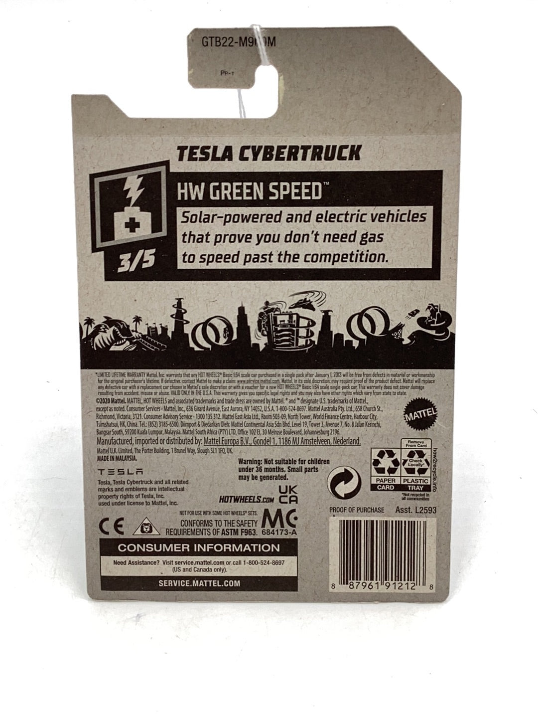 2022 Hot Wheels Green Speed #177 Tesla Cybertruck with protector