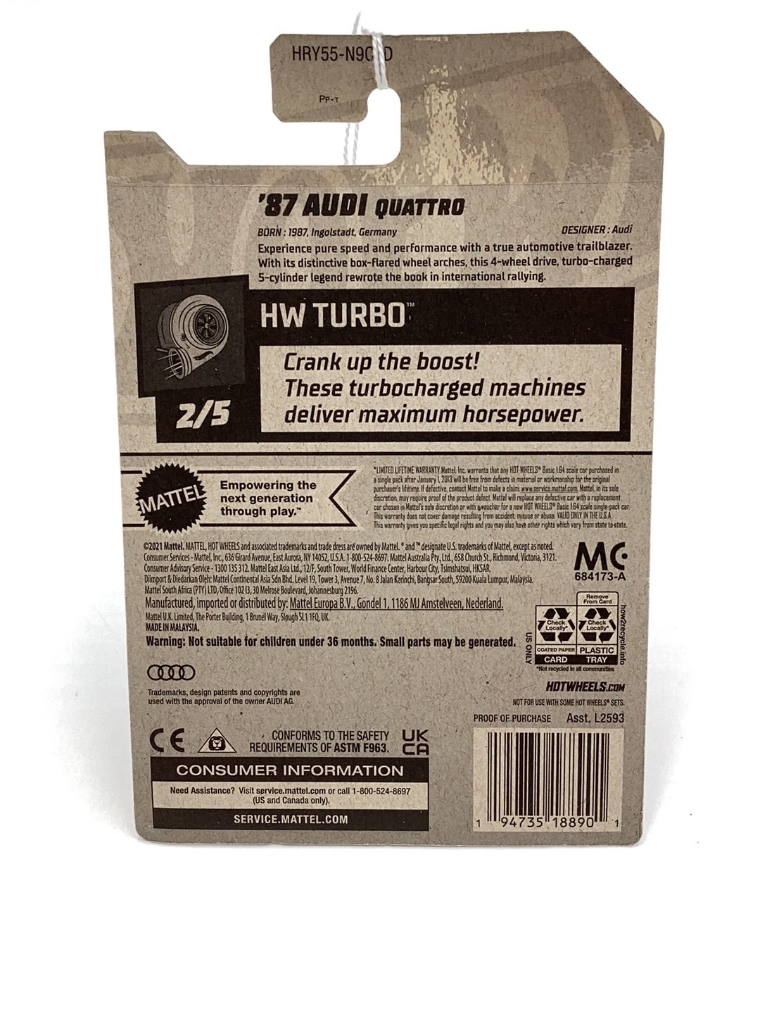 2024 Hot Wheels D case #102 87 Audi Quattro 107F