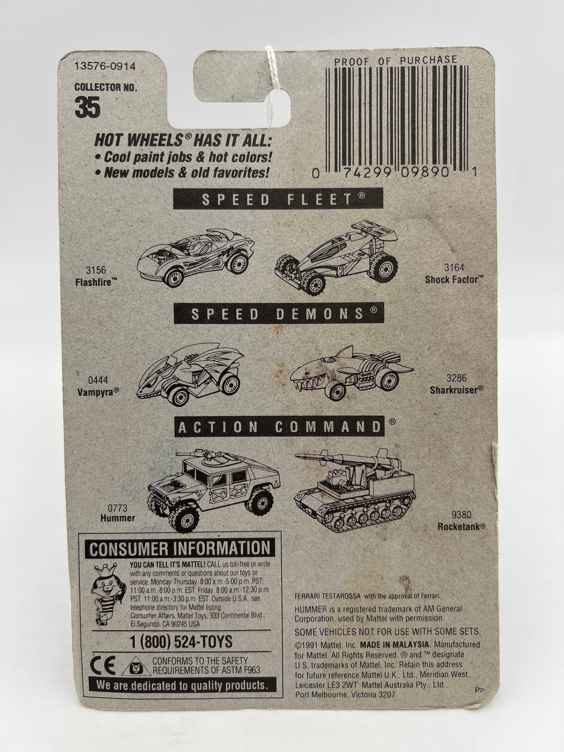 1992 Hot Wheels Gold Metal Speed #35 Ferrari Testarossa Black Mesh Wheels Card Not Perfect SR