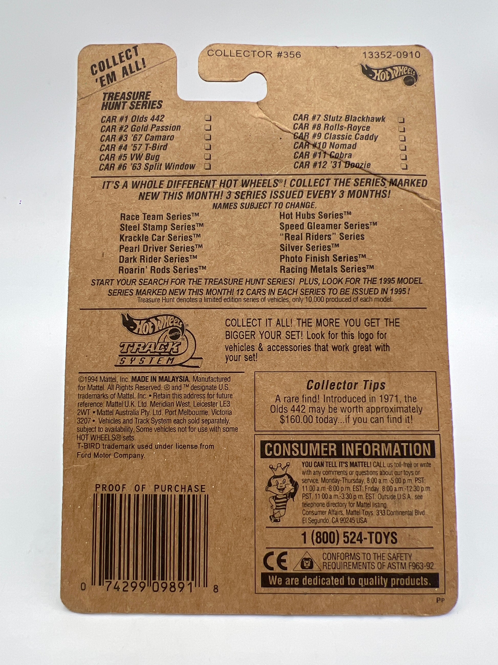 1995 Hot Wheels Treasure Hunt Series #4 Real Riders 57 T-Bird W/Protector Card Has Wrinkles