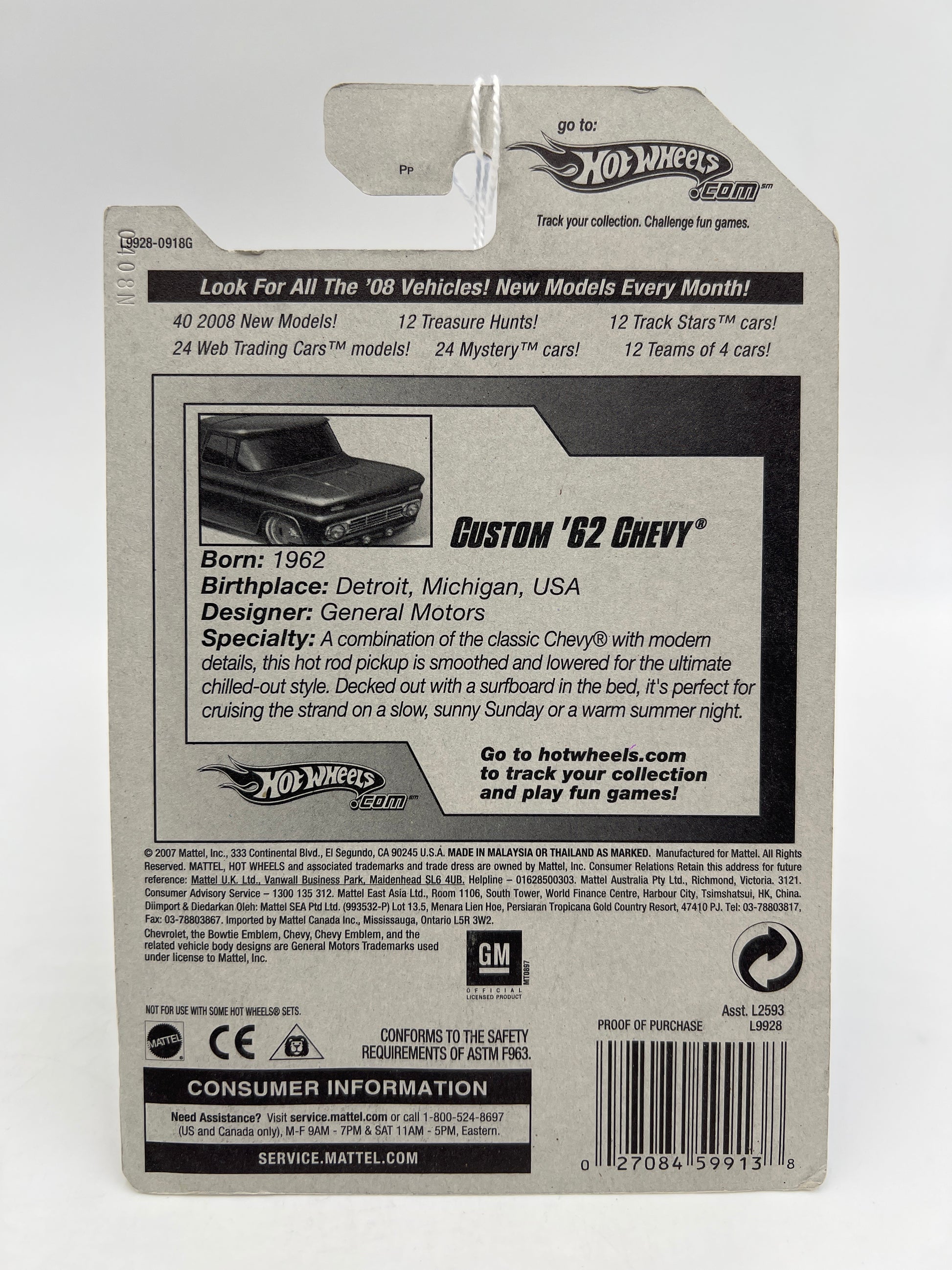 2008 Hot Wheels New Models #13 Custom 62 Chevy Dark Red W/Black Surf Board 7A