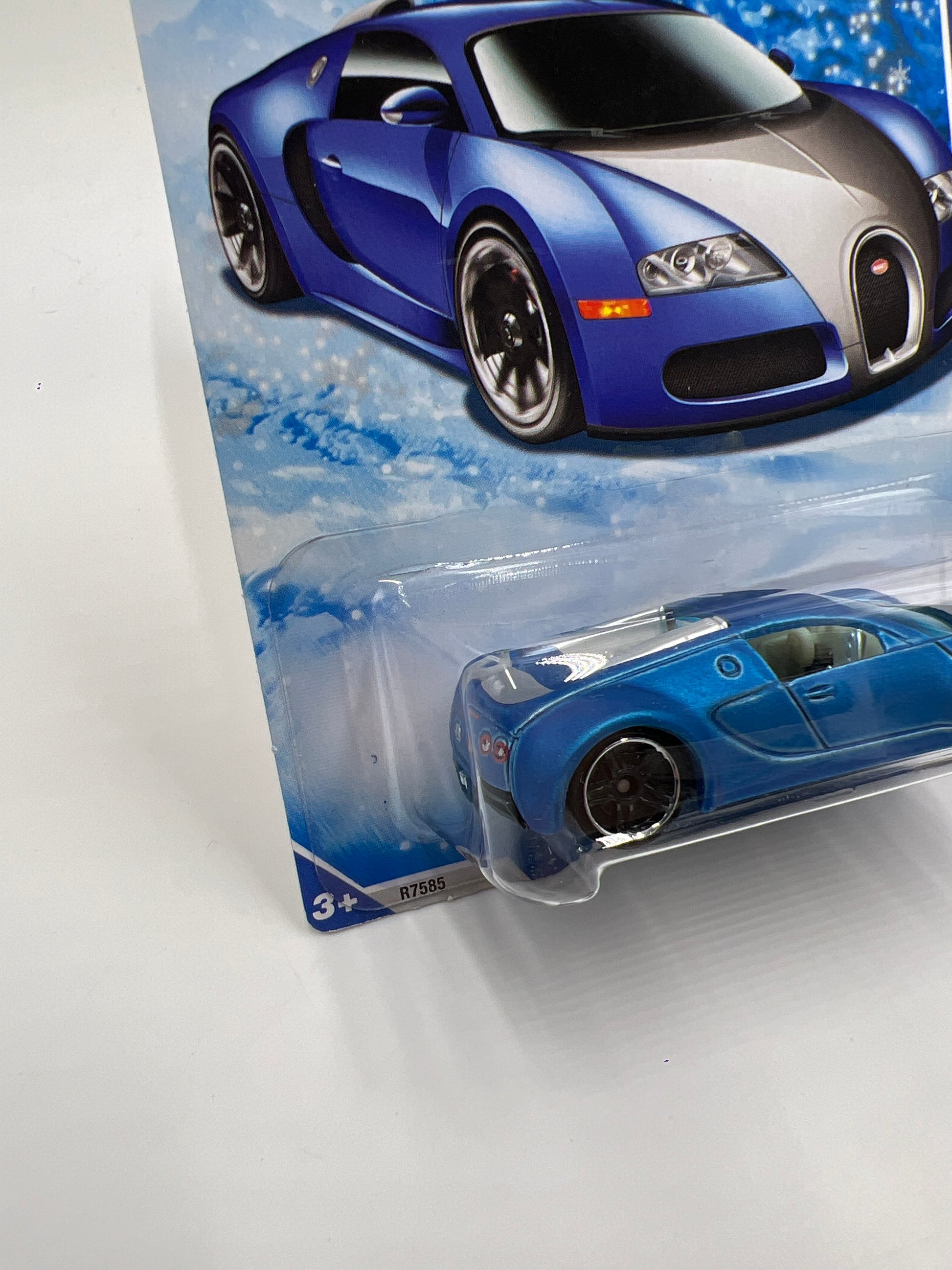 2010 Hot Wheels Target Exclusive Snowflake Card #160 Bugatti Veyron Satin Blue W/Protector