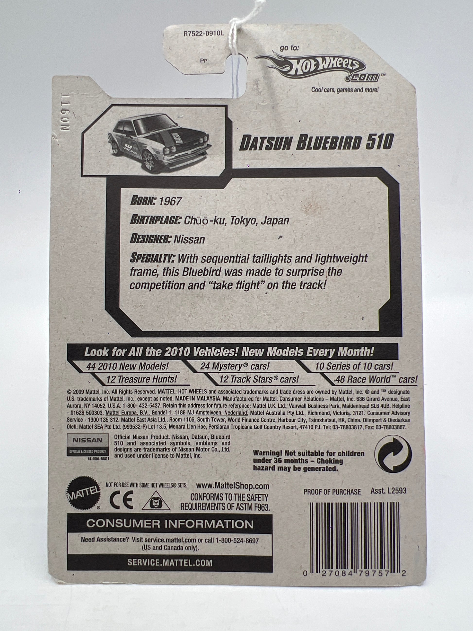 2010 Hot Wheels Nightburnerz #97 Datsun Bluebird 510 White 84A