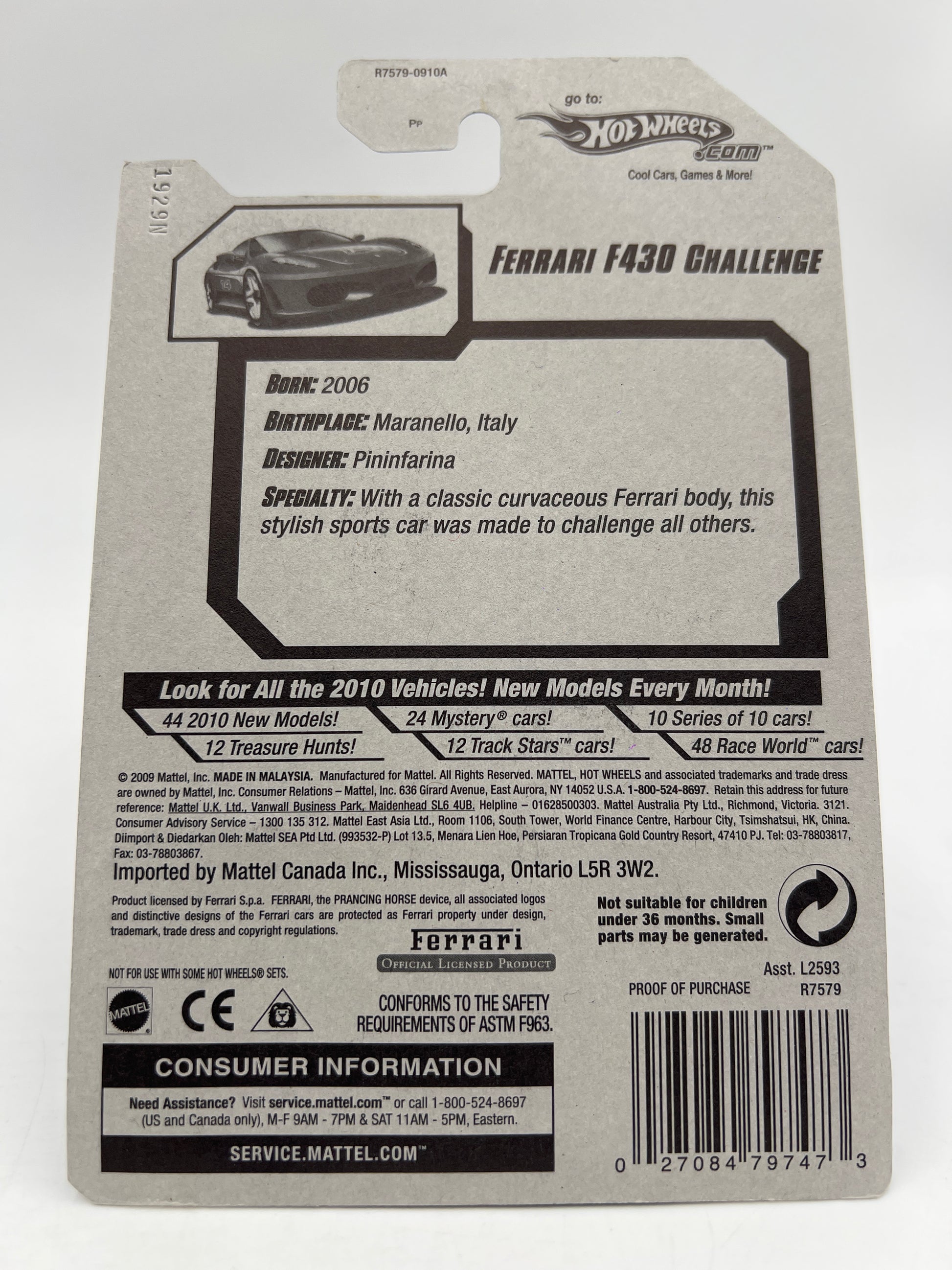 2010 Hot Wheels Racing #154 Ferrari F430 Challenge W/Protector SR