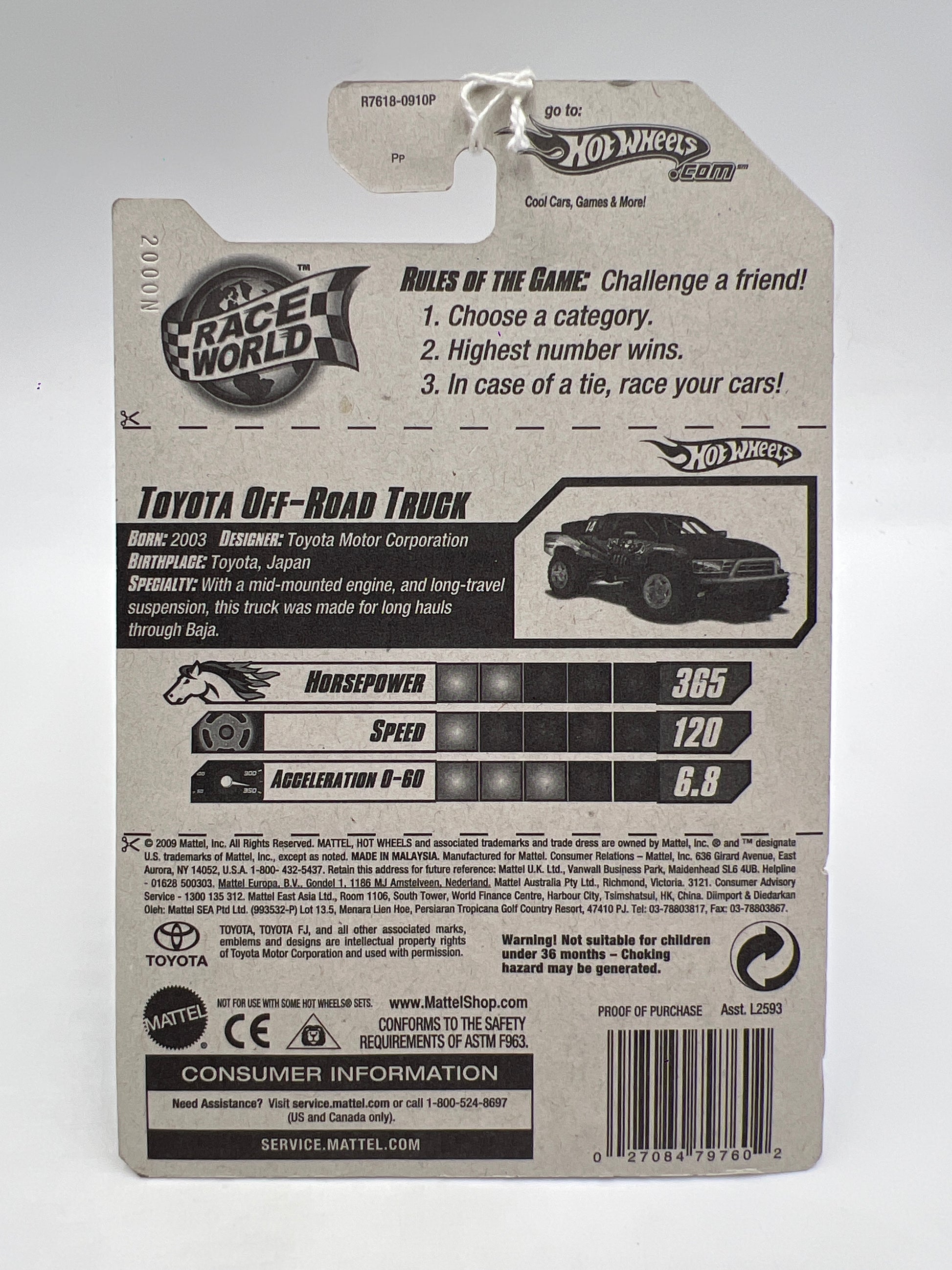 2010 Hot Wheels Race World Desert #189 Toyota Off-Road Truck Black 94D