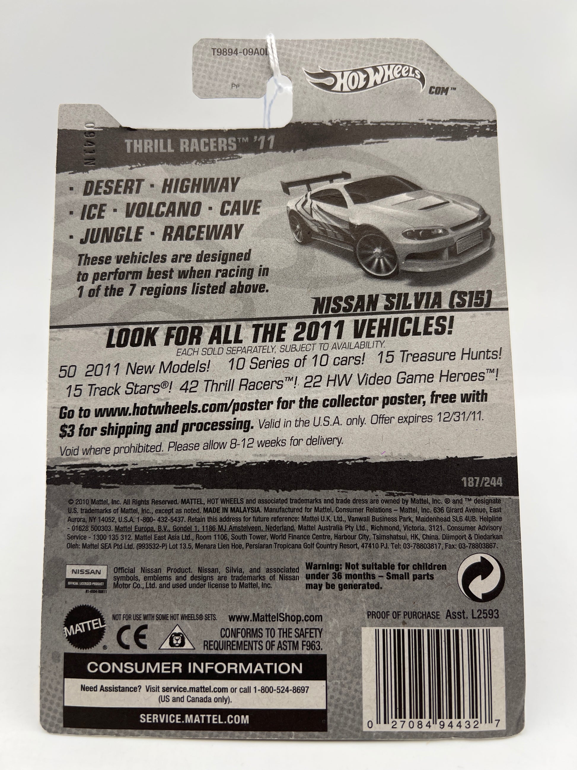 2011 Hot Wheels Thrill Racers Highway #187 Nissan Silvia S15 Yellow 82A