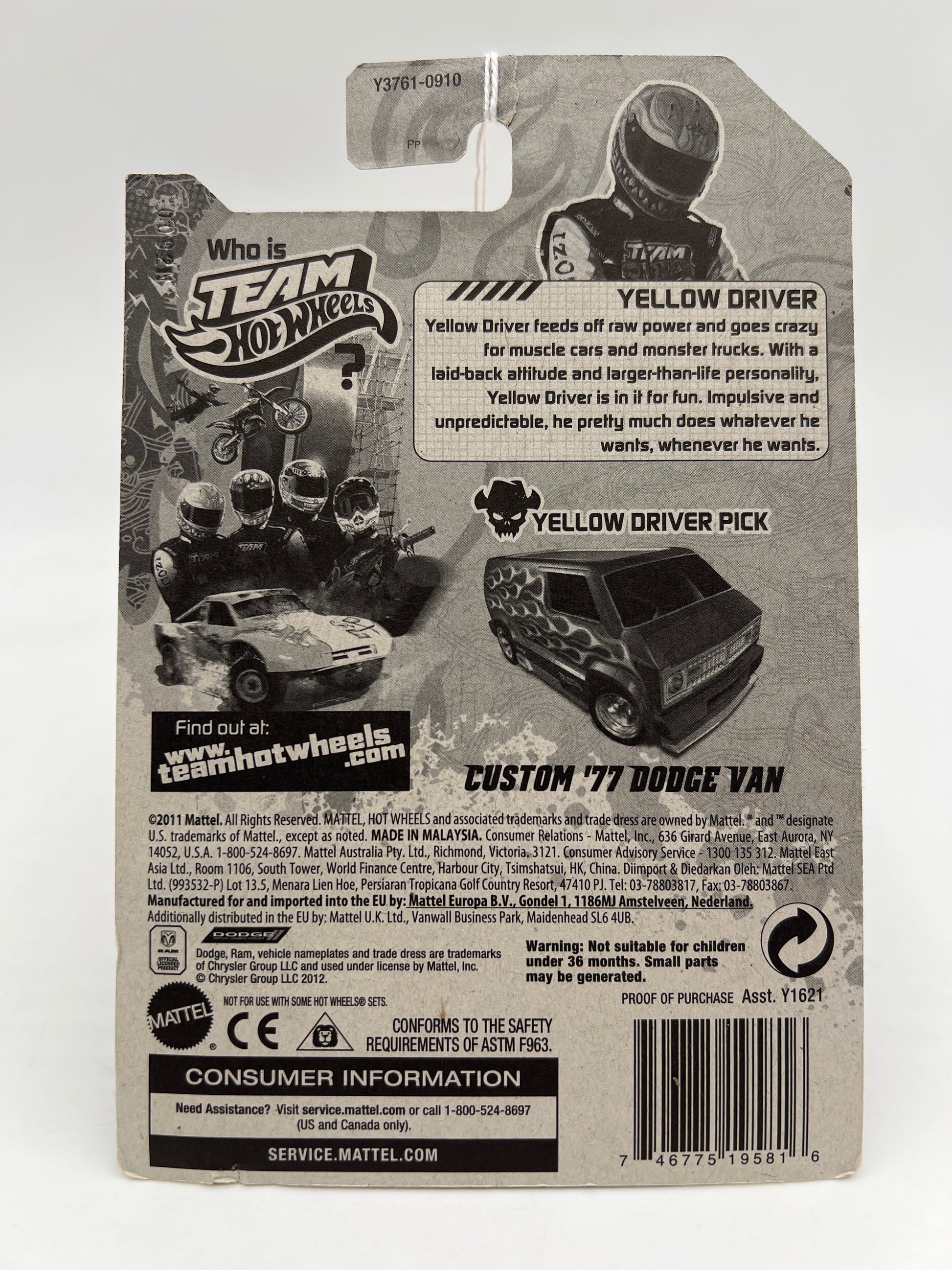 2012 Team Hot Wheels Top Rides Yellow Driver Picks Custom 77 Dodge Van Red 153A