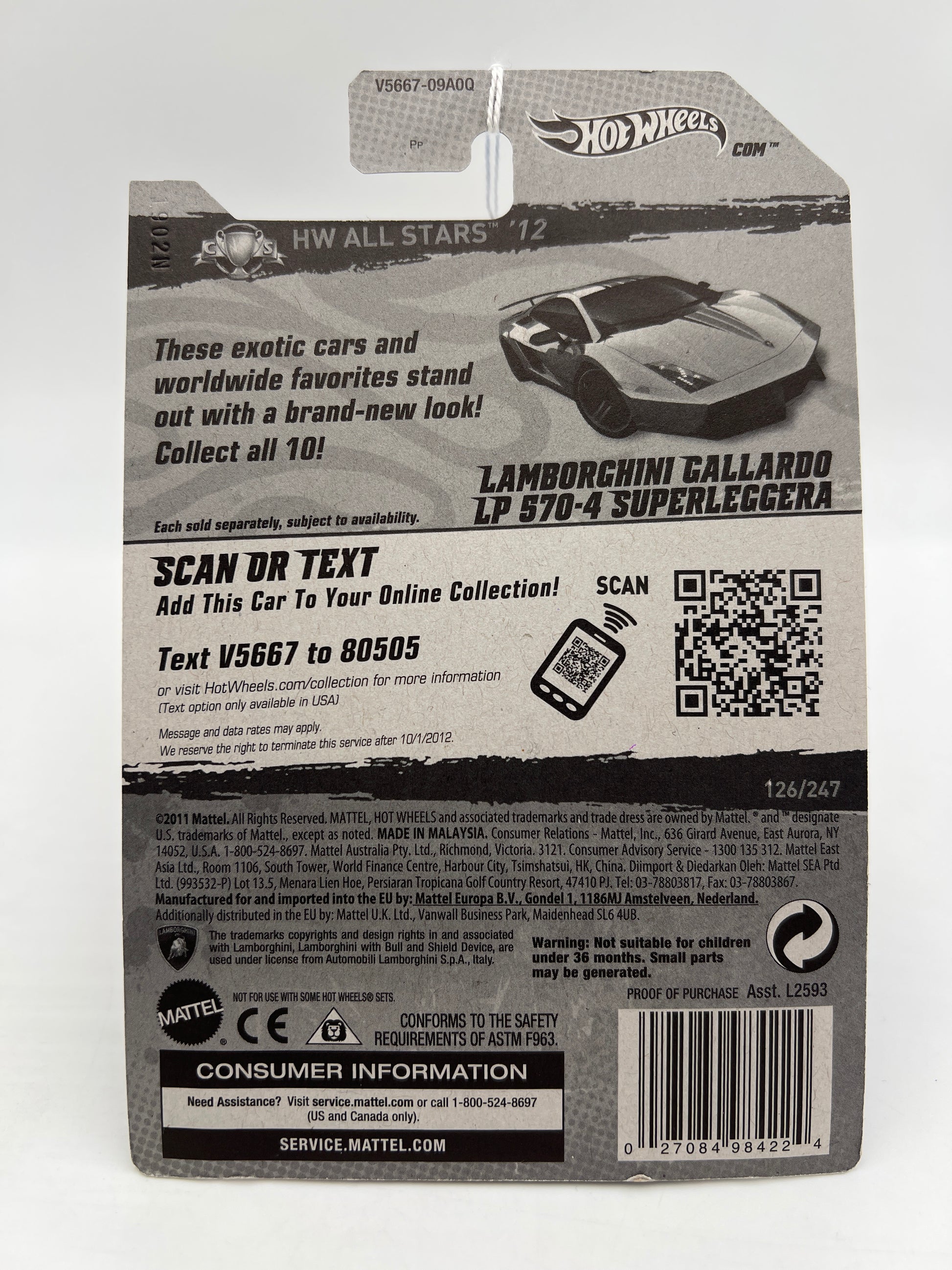 2012 Hot Wheels All Stars #126 Lamborghini Gallardo LP 570-4 SuperLeggera Silver