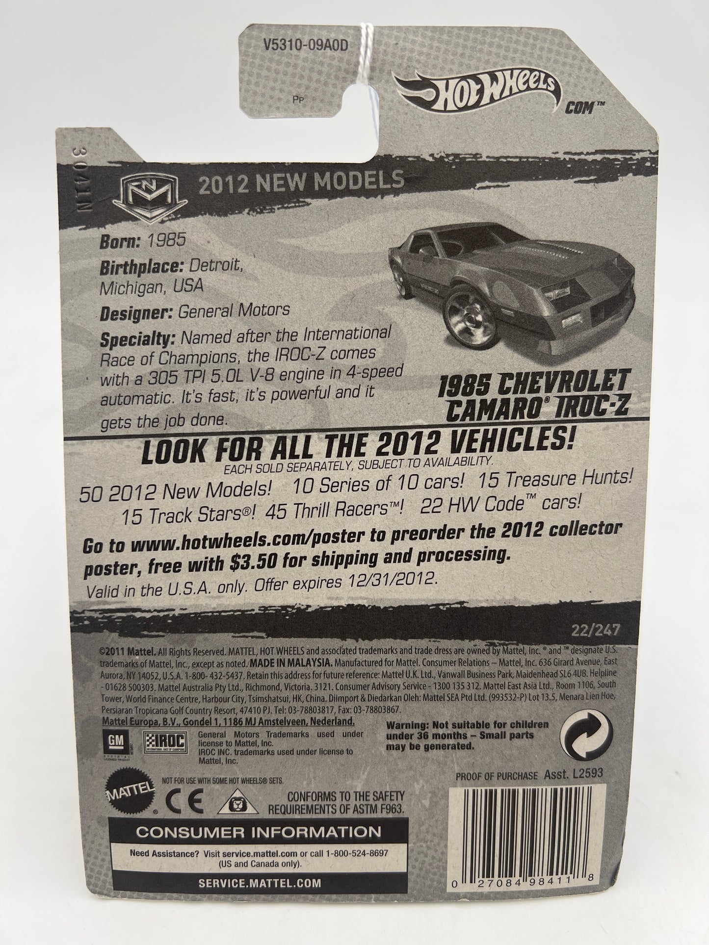 2012 Hot Wheels New Models #22 1985 Chevrolet Camaro IROC-Z Red see description SR
