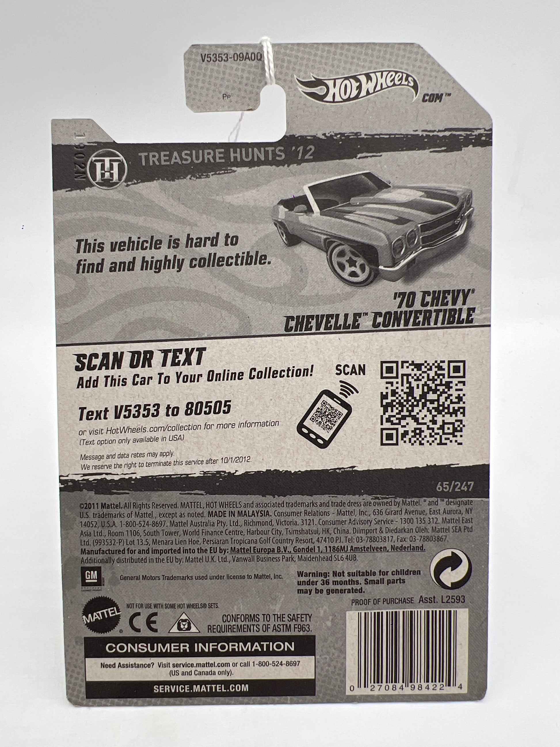 2012 Hot Wheels Treasure Hunts #65 70 Chevy Chevelle Convertible Orange 273C