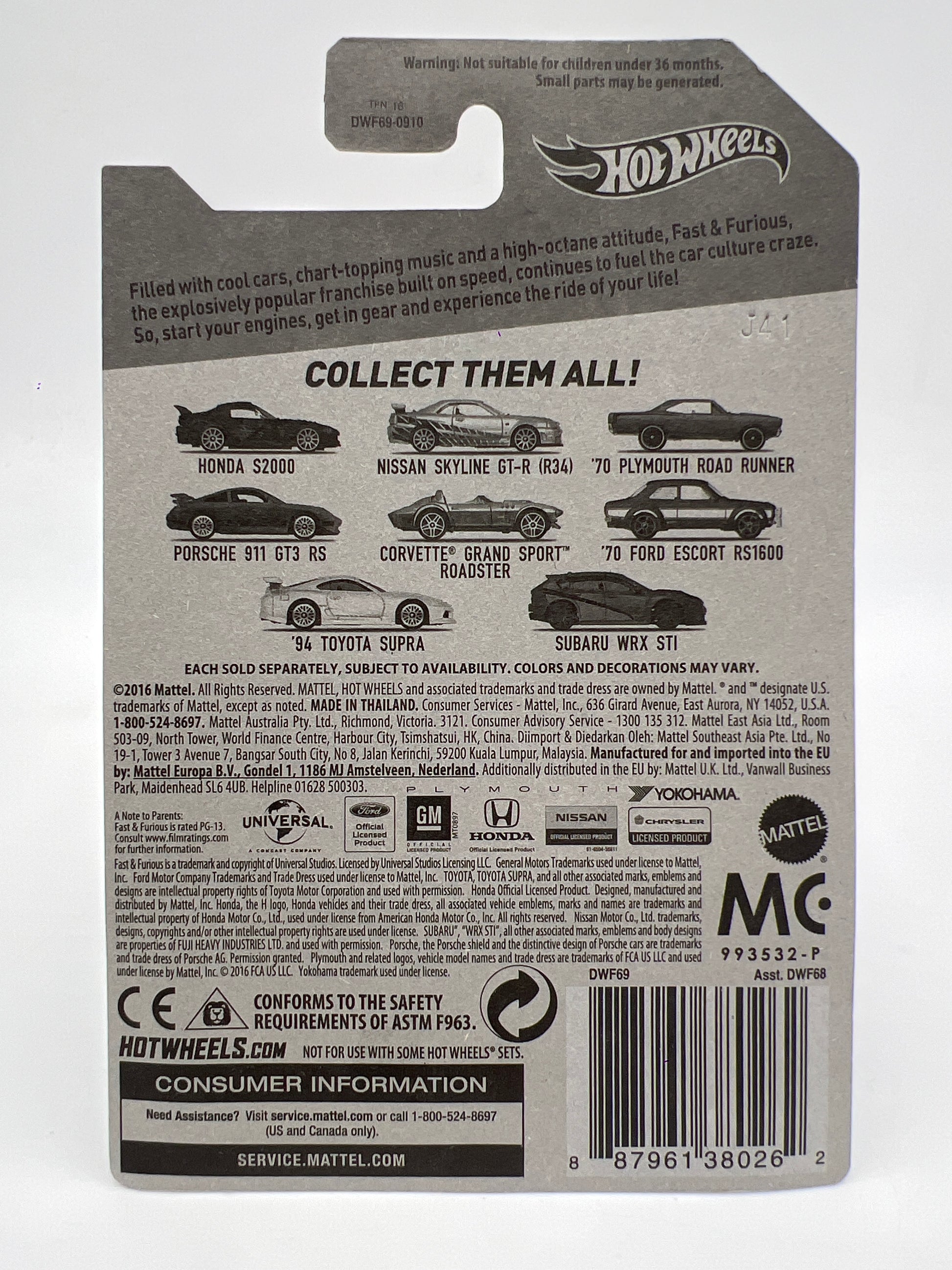 2016 Hot Wheels Fast & Furious #2 Nissan Skyline GT-R R34 Silver W/Protector