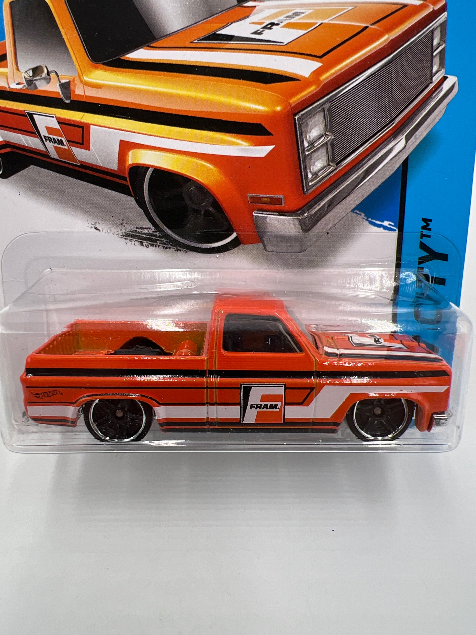 2015 Hot Wheels City #16 83 Chevy Silverado Fram Orange W/Protector 2
