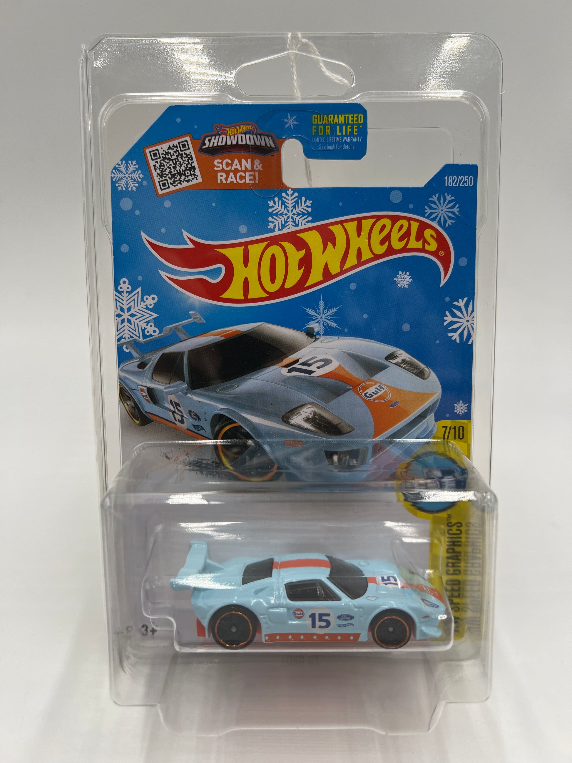 2016 Hot Wheels Target Exclusive Snowflake Card #182 Ford GT Gulf Blue W/Protector