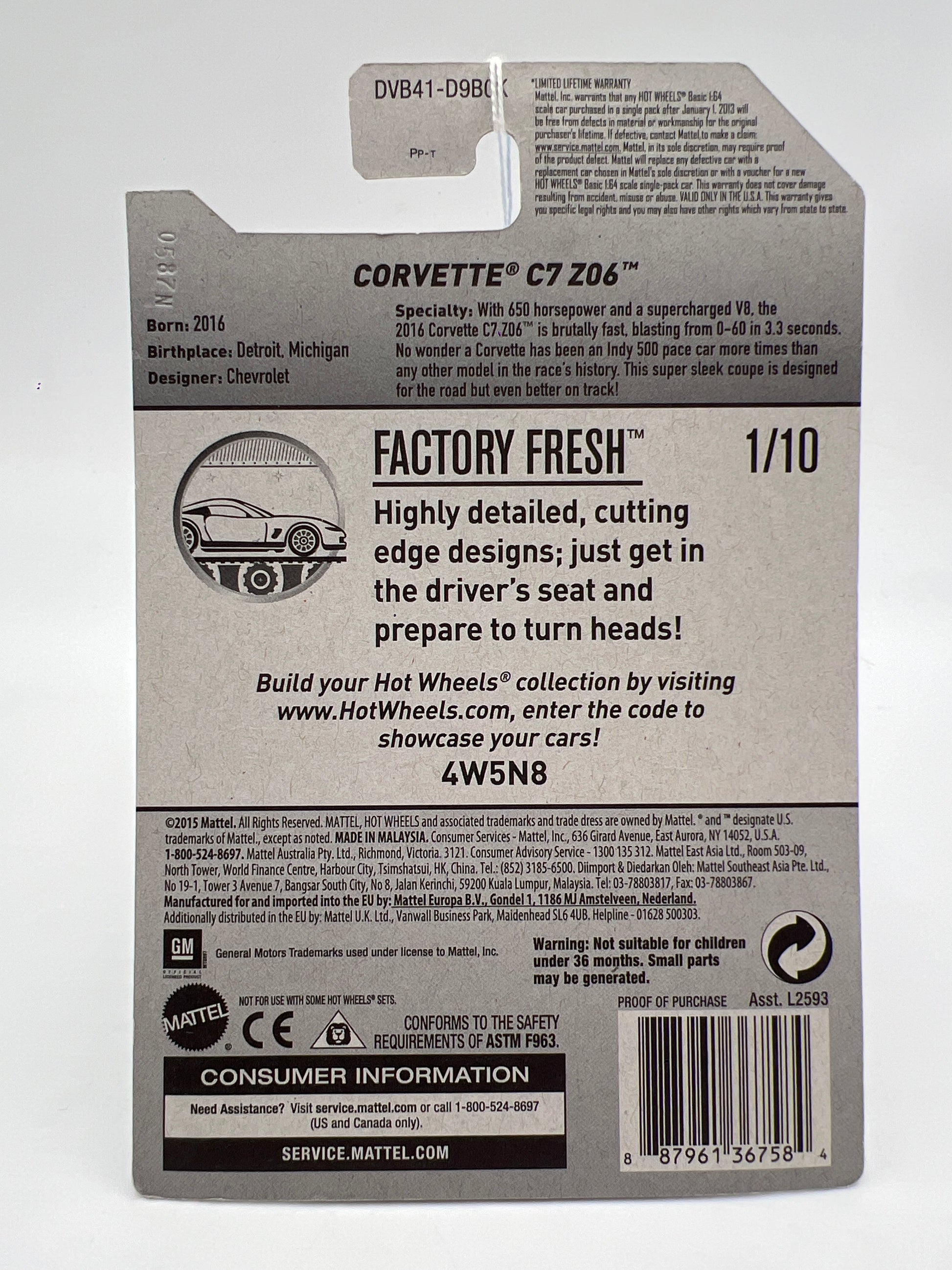 2017 Hot Wheels Factory Fresh #217 Corvette C7 Z06 Red 10B
