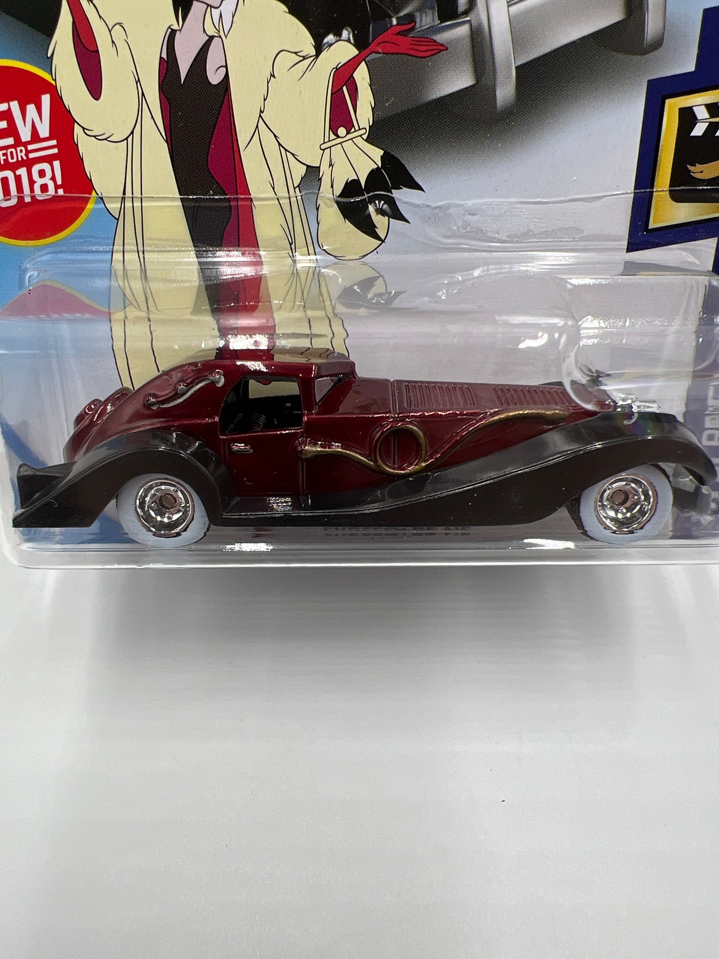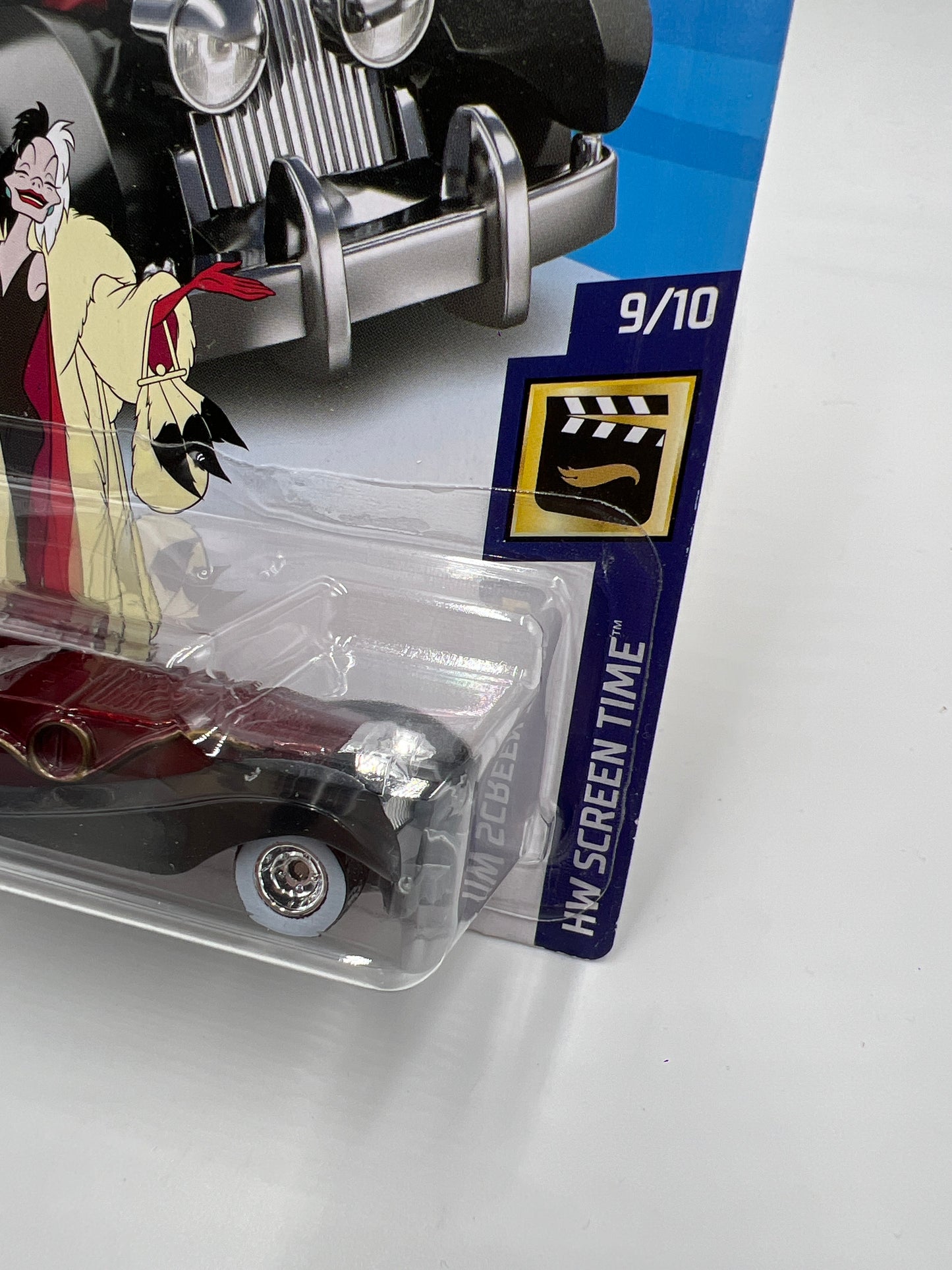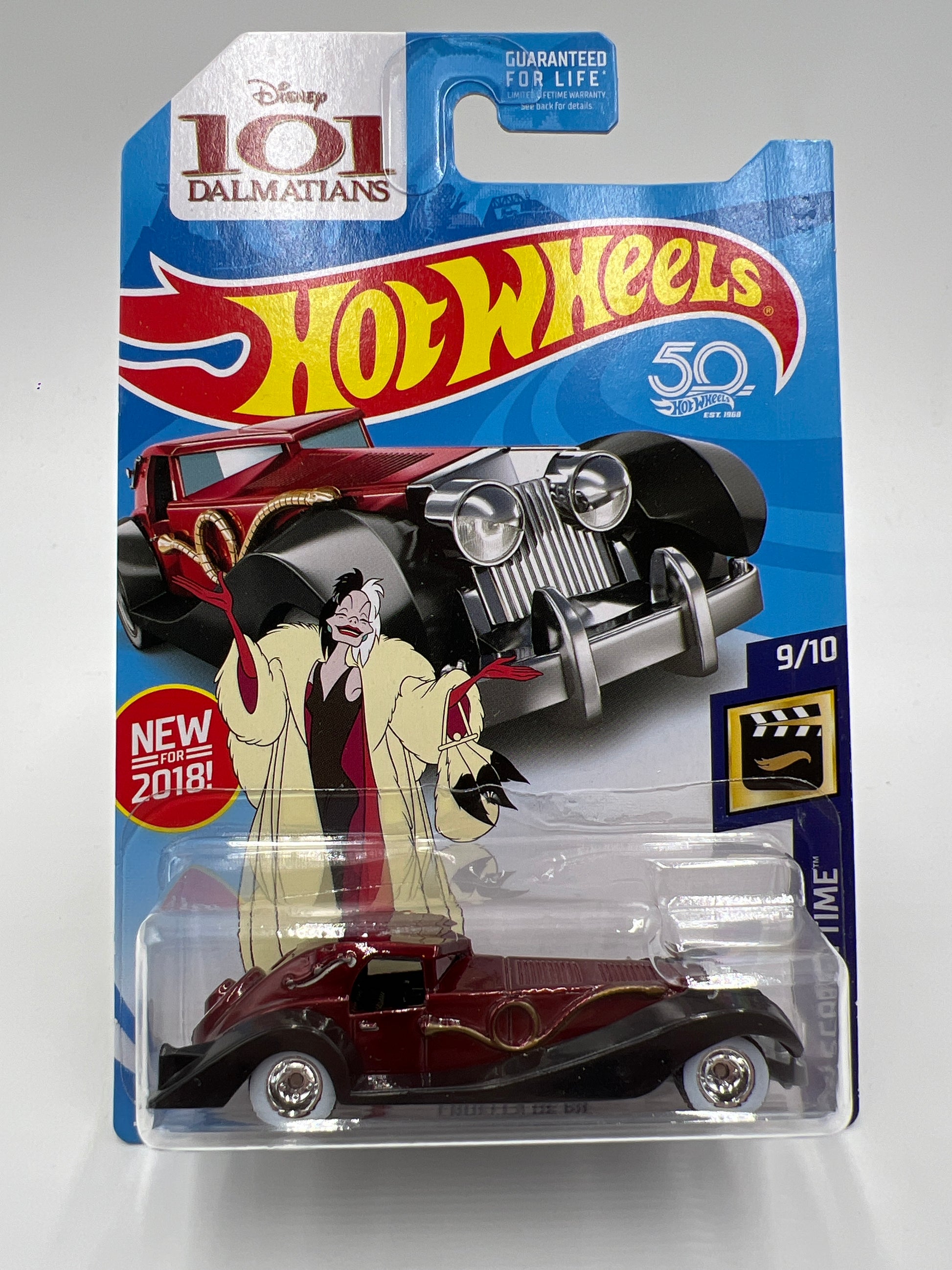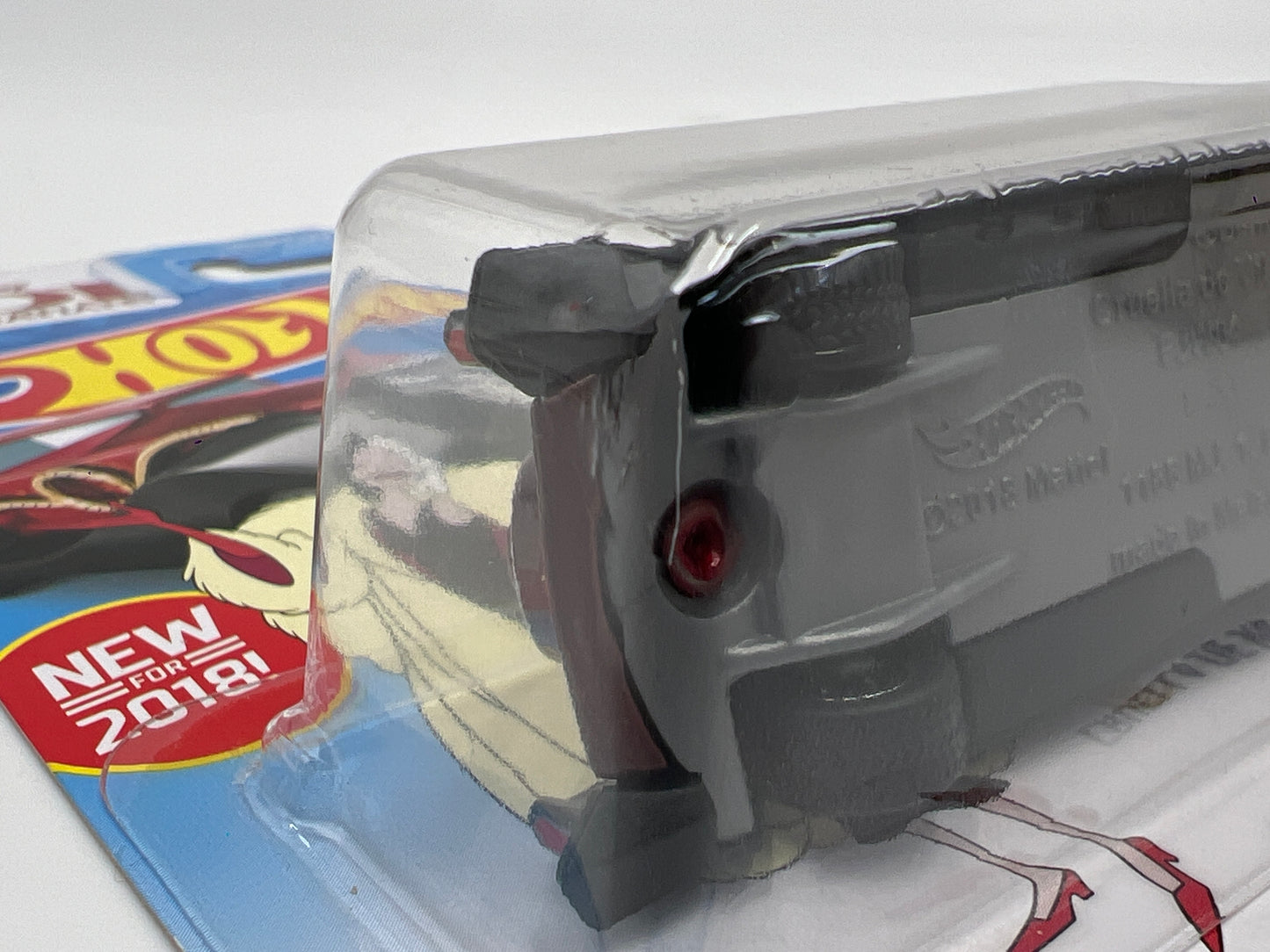 2018 Hot Wheels Super Treasure Hunt Cruella De Vil Red W/Protector Cracked Blister