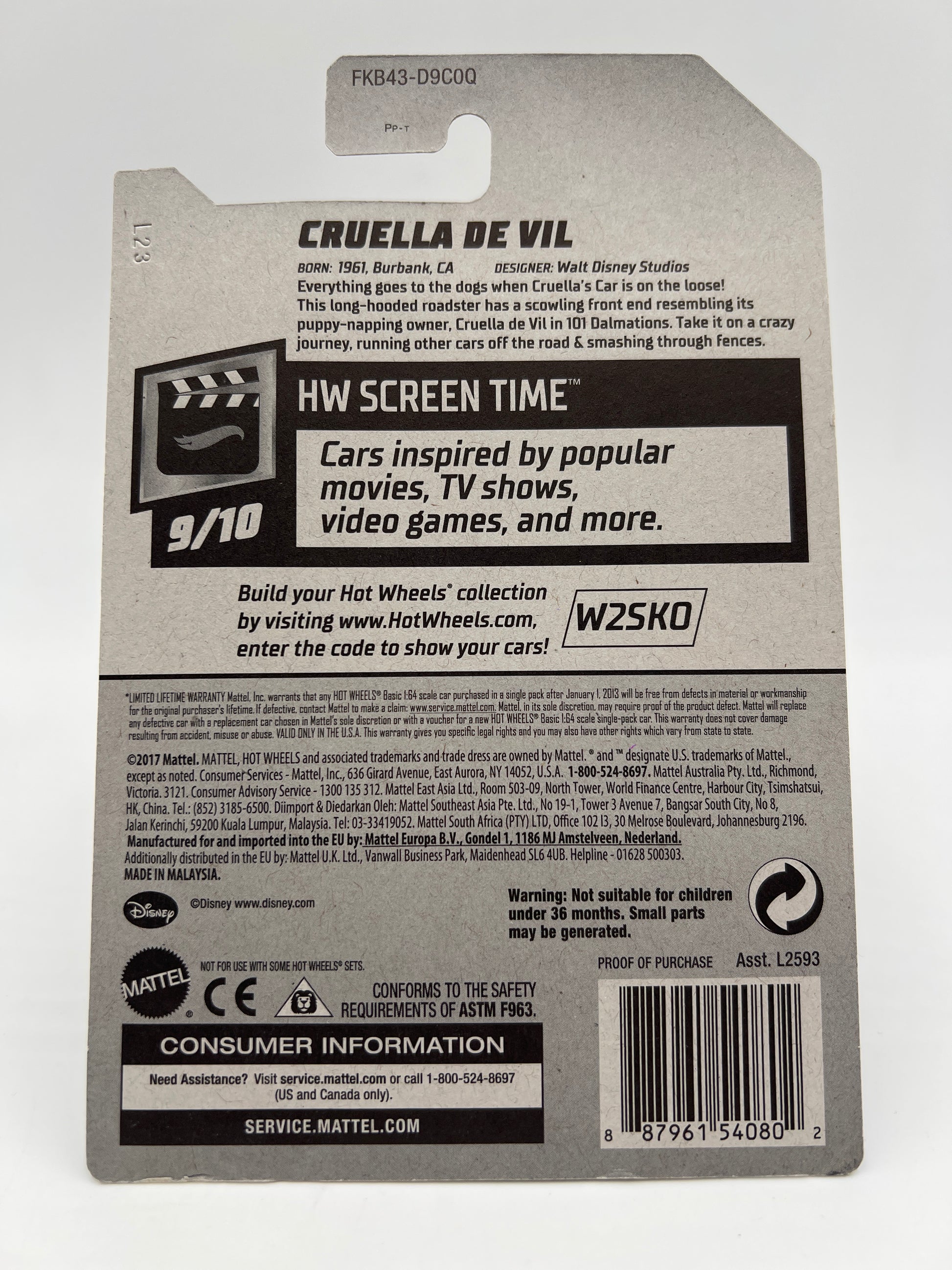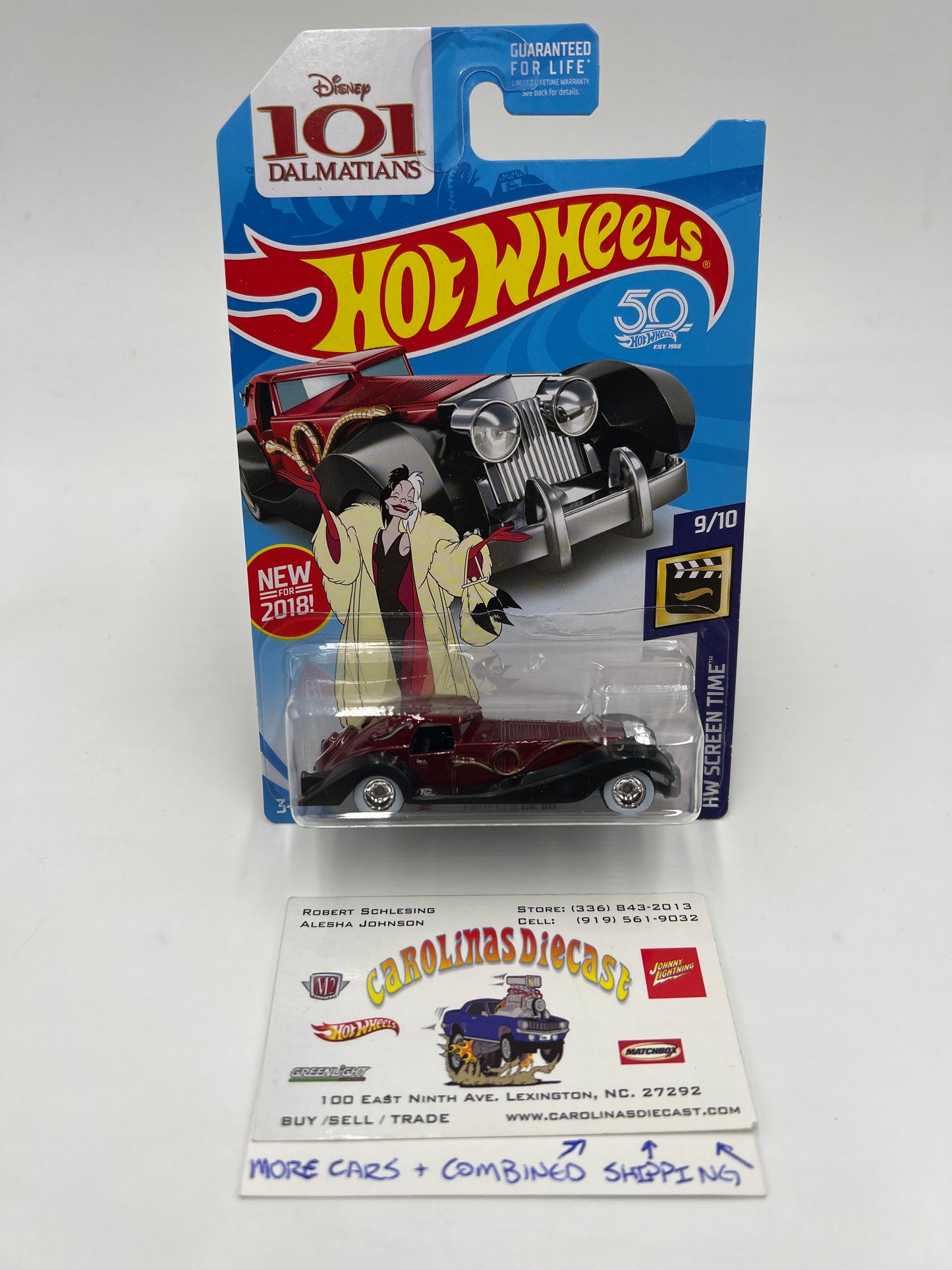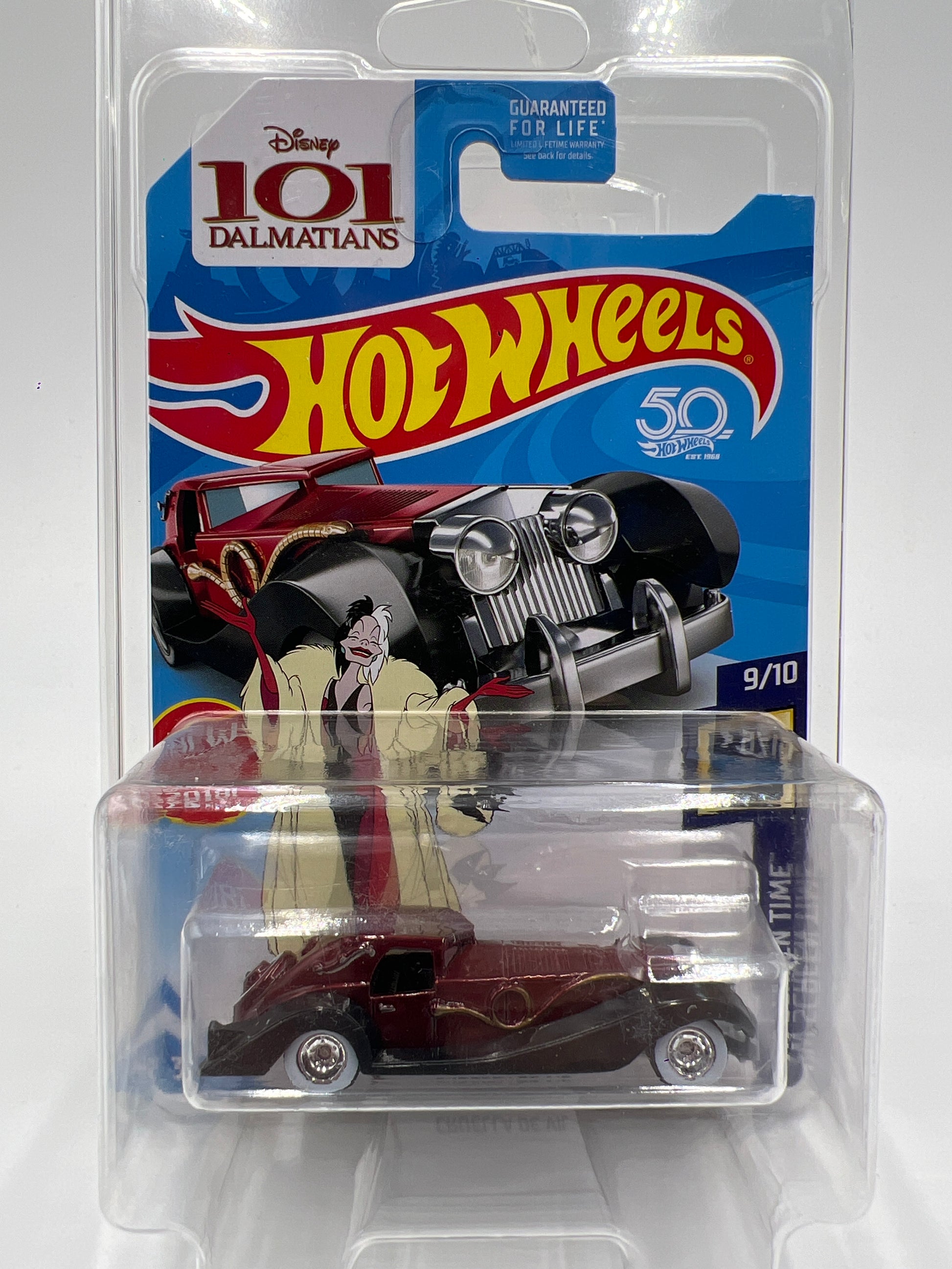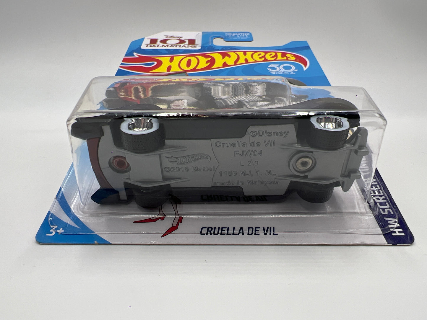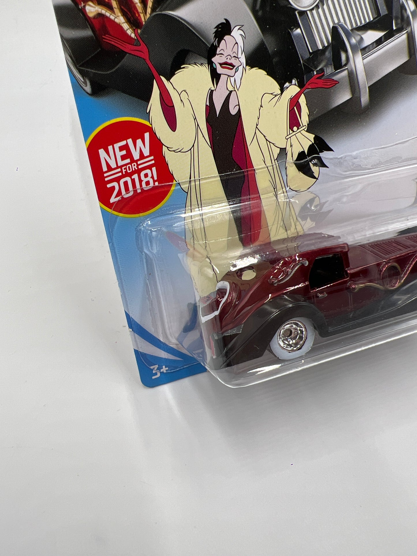 2018 Hot Wheels Super Treasure Hunt Cruella De Vil Red W/Protector Cracked Blister