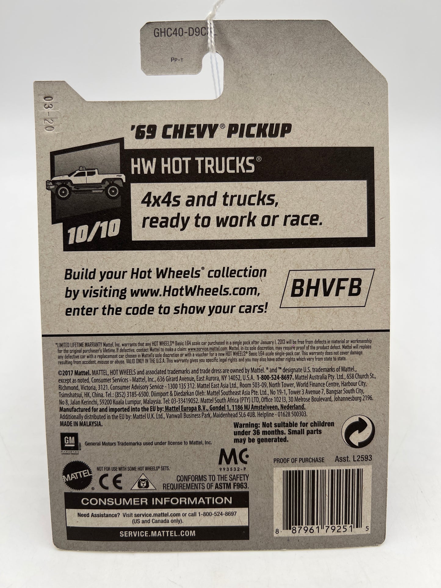 2020 Hot Wheels Hot Trucks #202 69 Chevy Pickup Green 16D