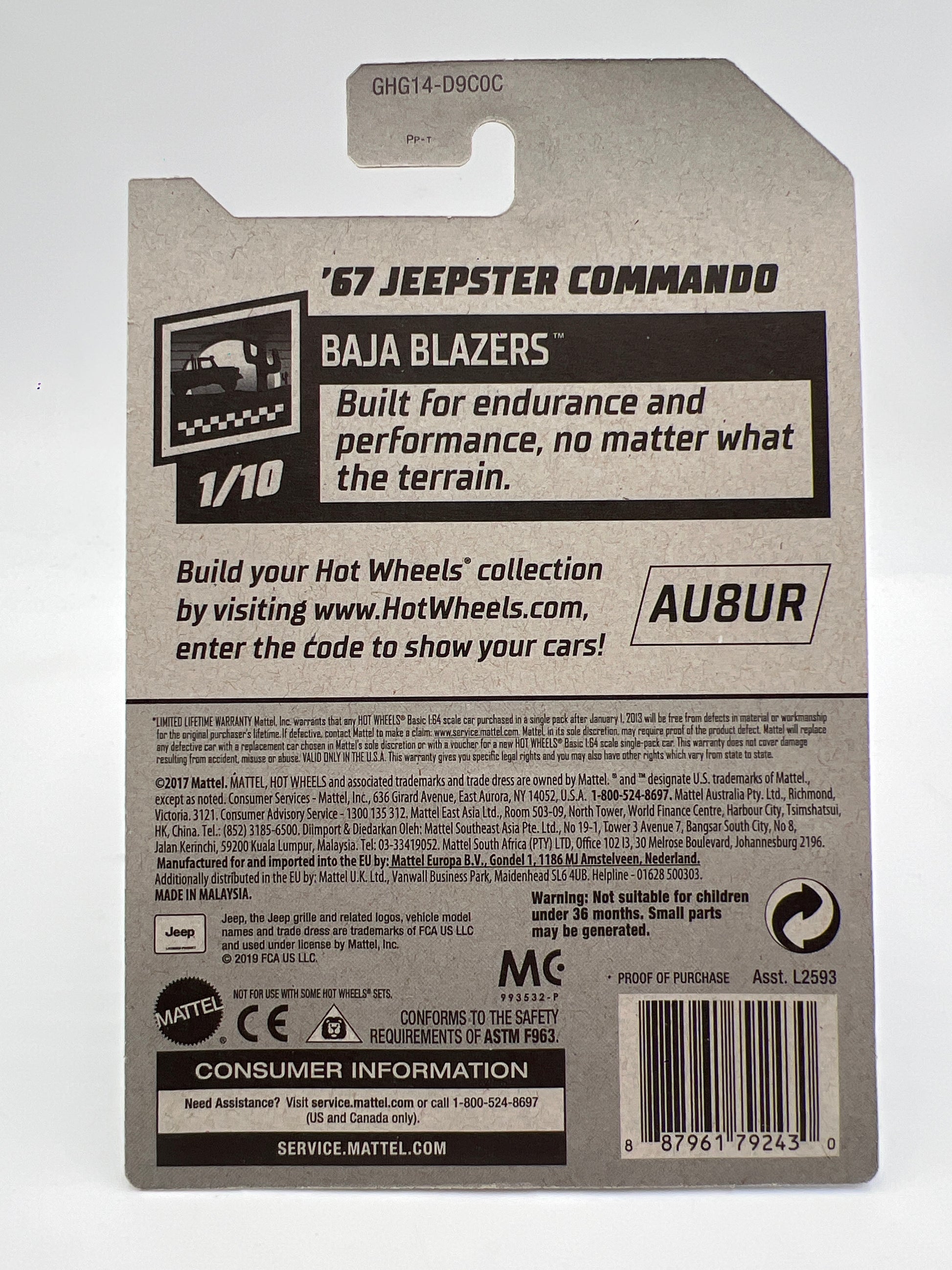 2020 Hot Wheels Super Treasure hunt #71 67 Jeepster Commando Blue W/Protector