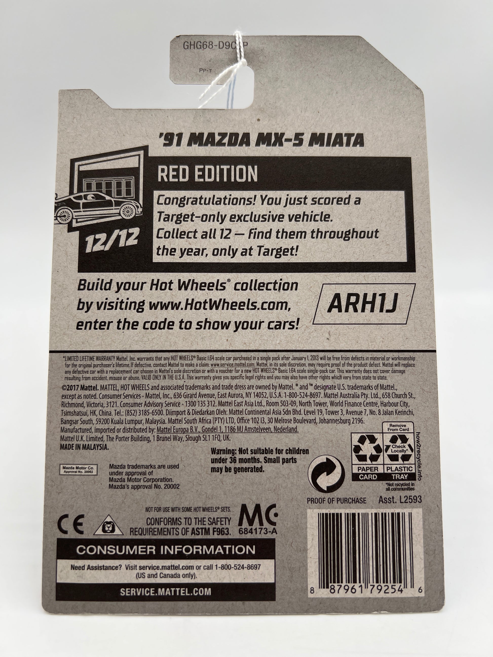 2020 Hot Wheels Target Exclusive Red Edition #208 91 Mazda MX-5 Miata White 148A