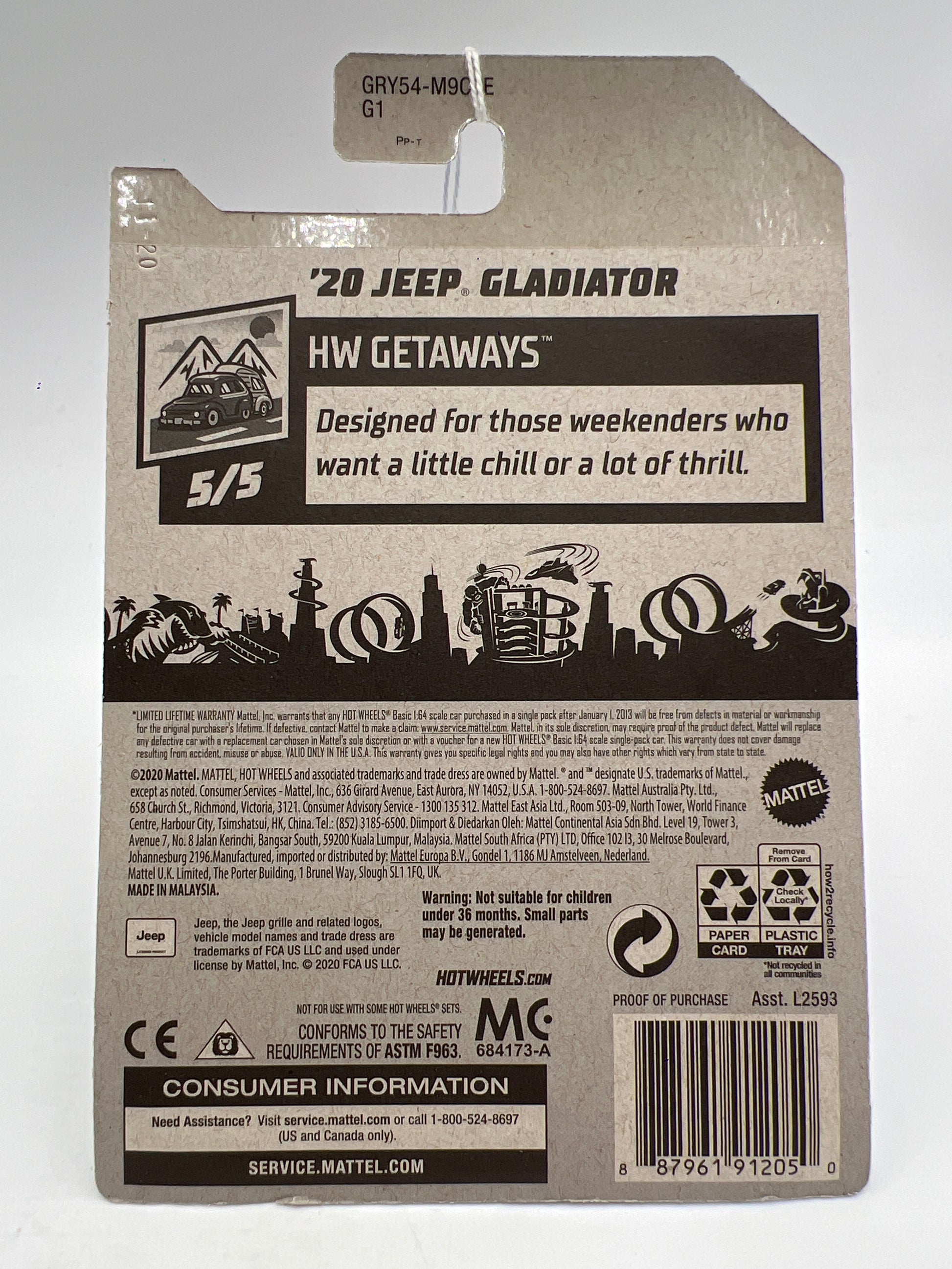 2021 Hot Wheels Getaways #117 20 Jeep Gladiator Blue 41F