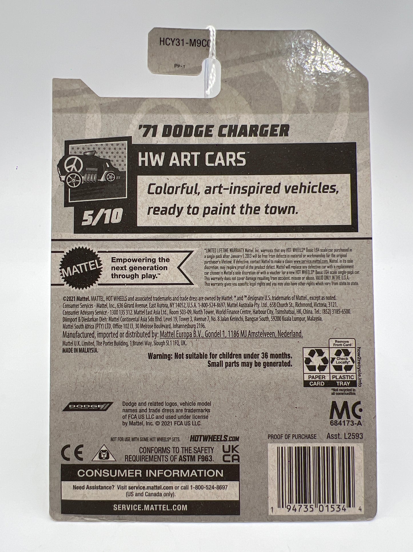 2022 Hot Wheels Art Cars Walmart Exclusive Zamac 06 #109 71 Dodge Charger Cracked Blister 143i