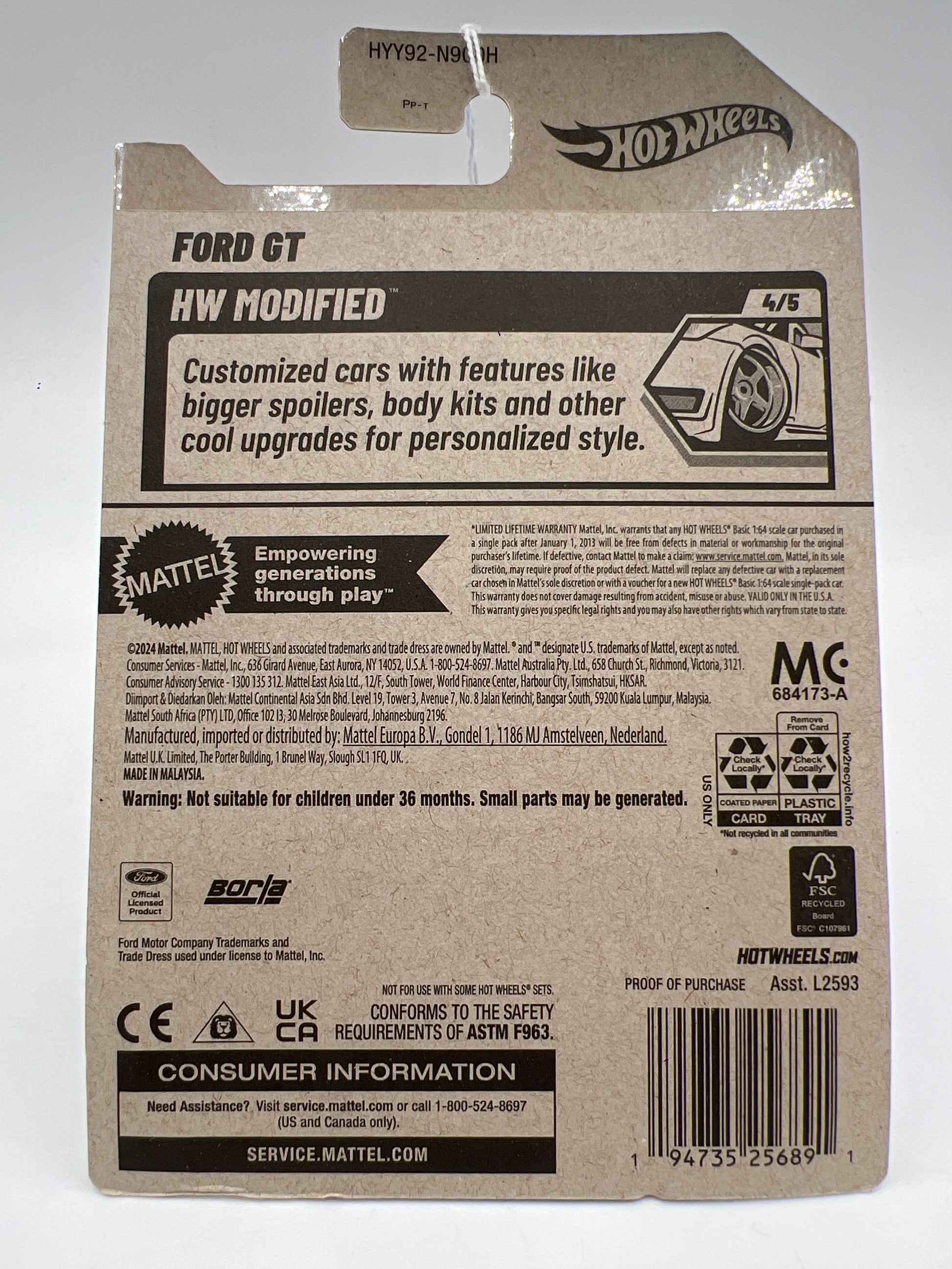 2025 Hot Wheels H Case Modified #159 Borla Ford GT White 23D