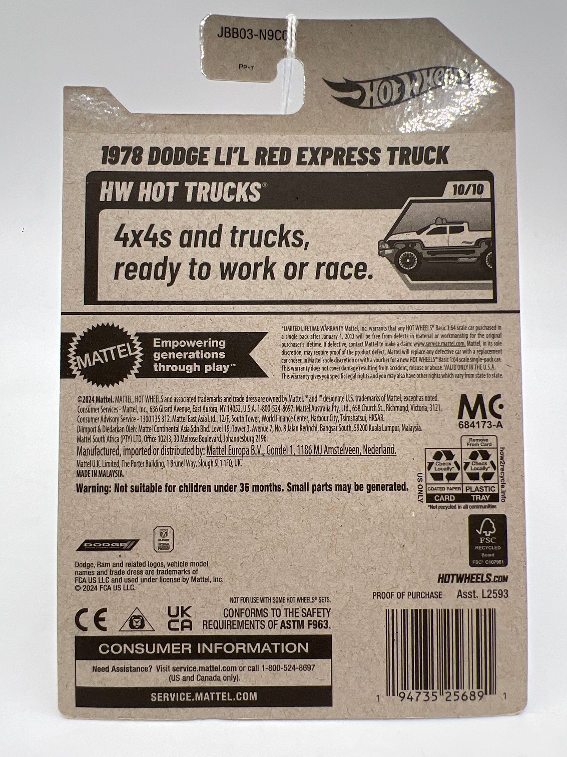 2025 Hot Wheels H Case HW Hot Trucks #173 1978 Dodge Lil Red Express Truck White 40B