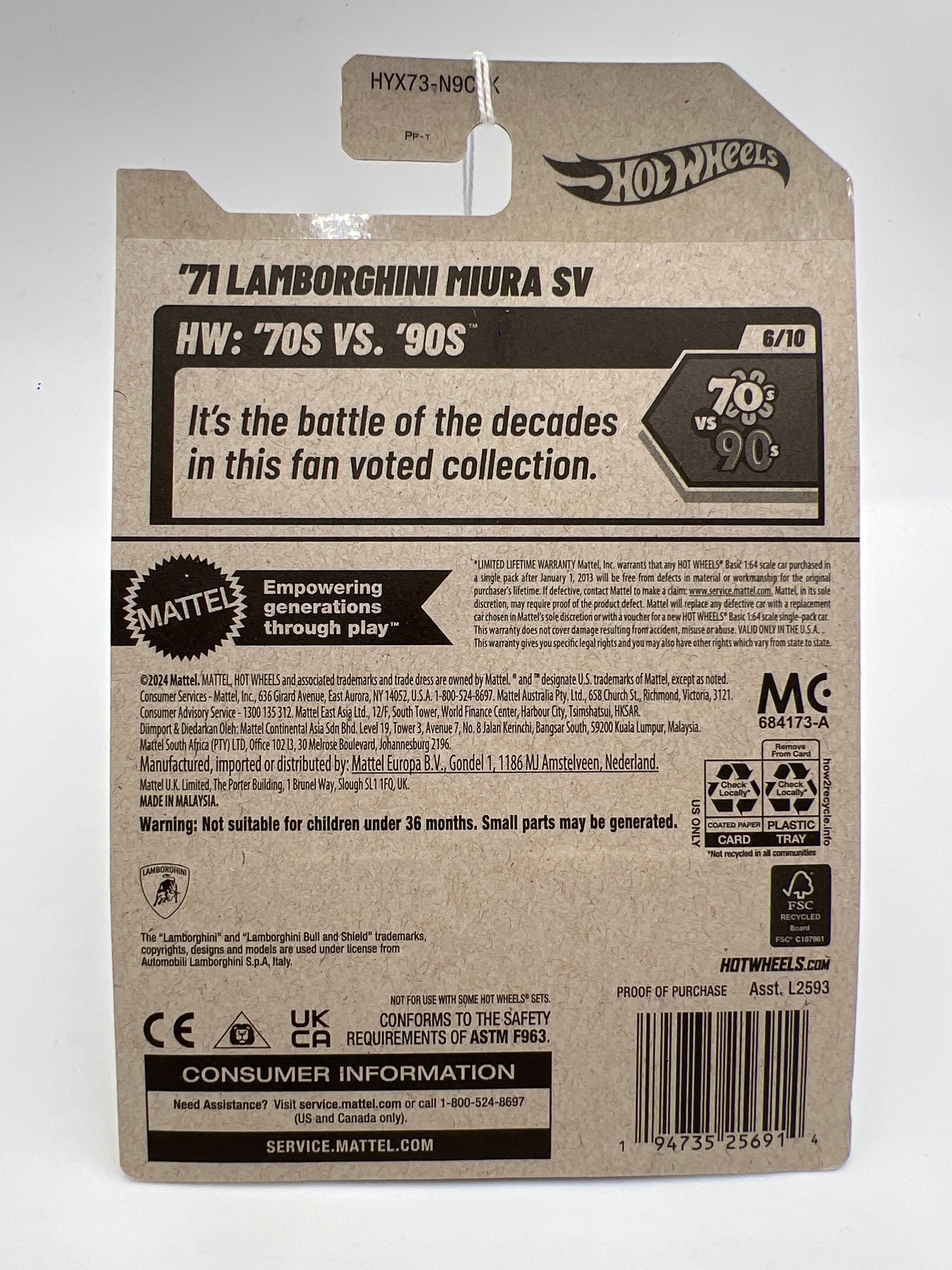 2025 Hot Wheels 70s Vs 90s #78 71 Lamborghini Miura SV Black 101B