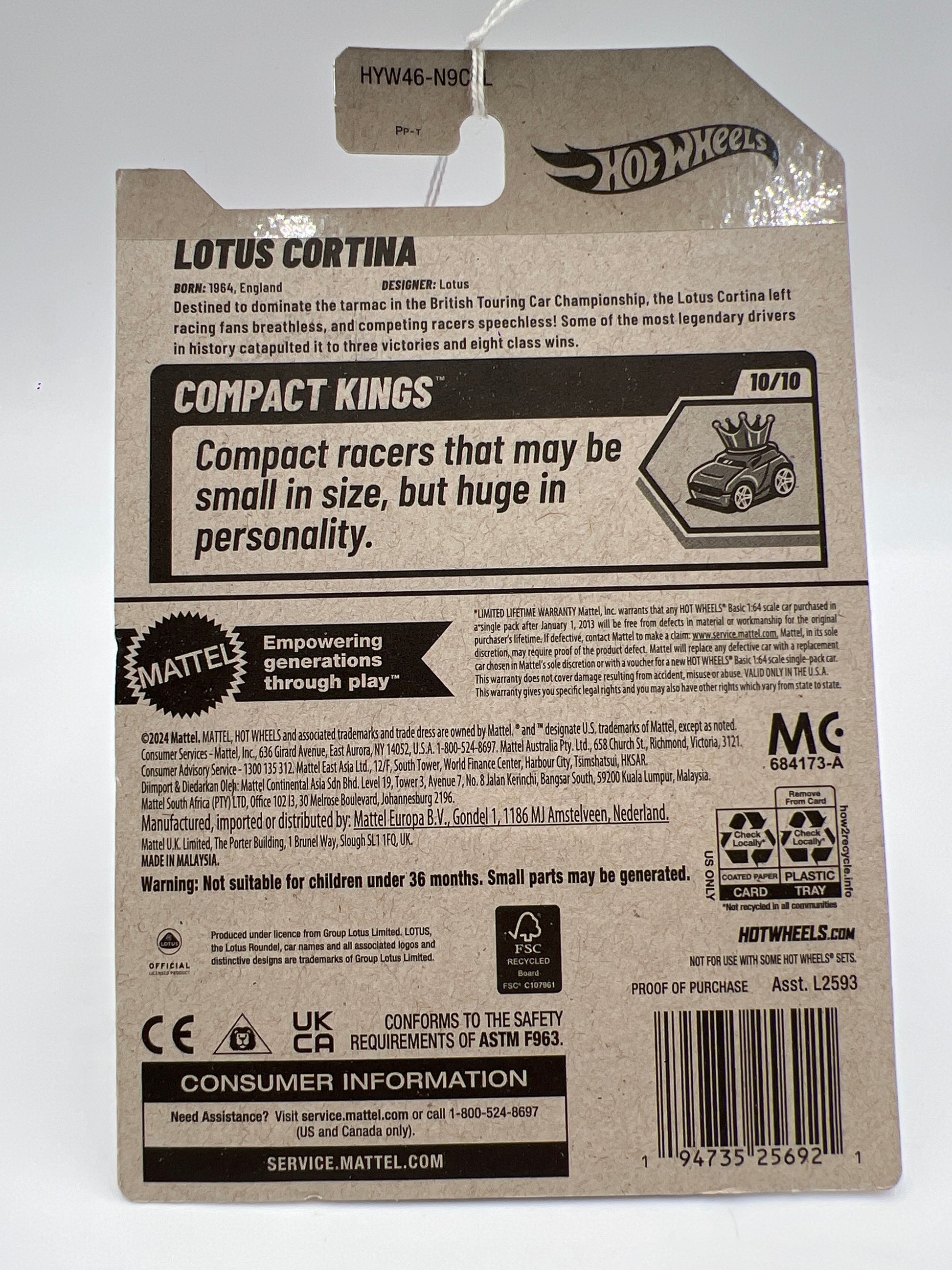 2025 Hot Wheels L Case Compact Kings #213 Lotus Cortina White 68E