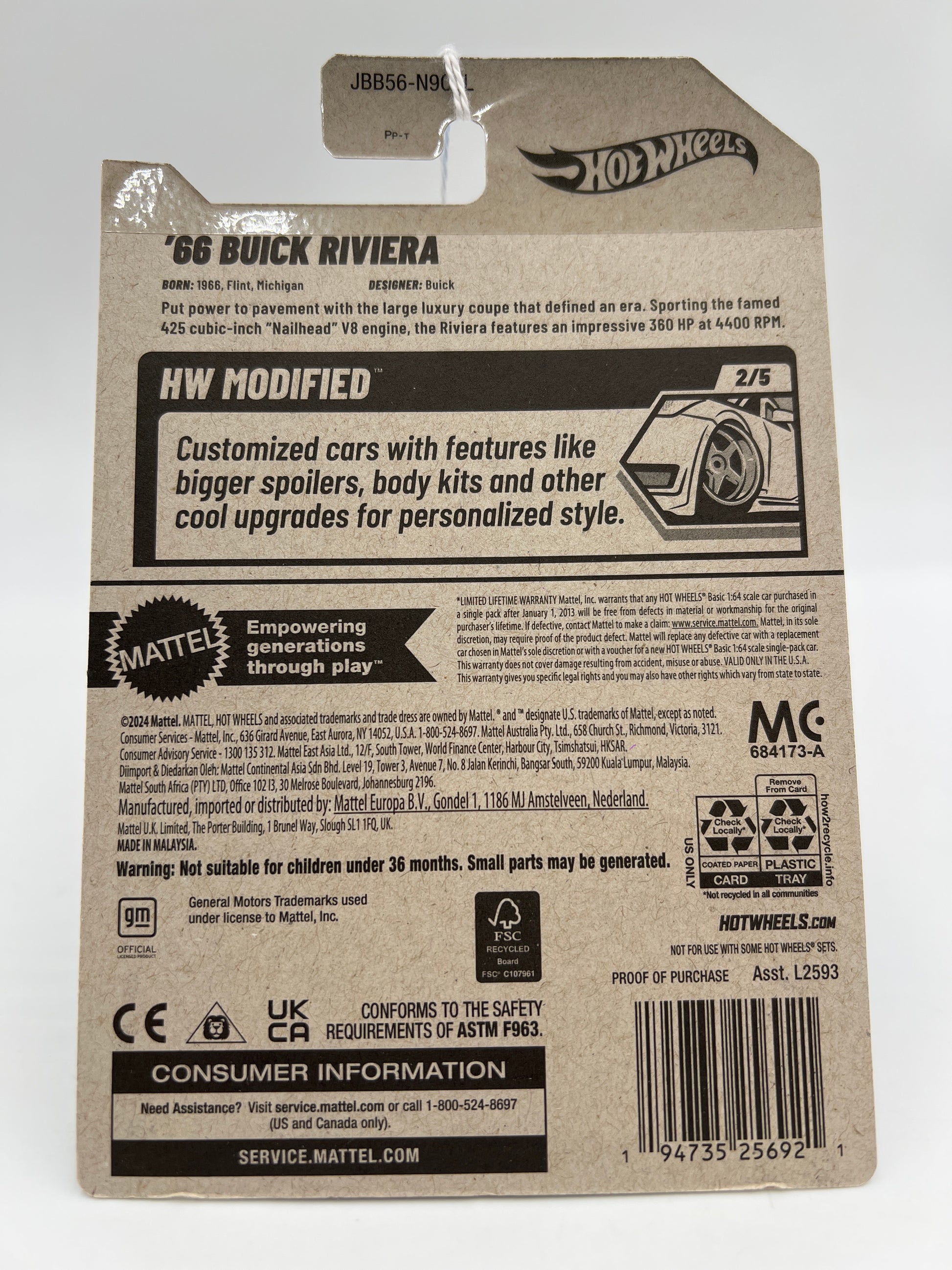 2025 Hot Wheels L Case Modified #50 66 Buick Riviera Black 58G