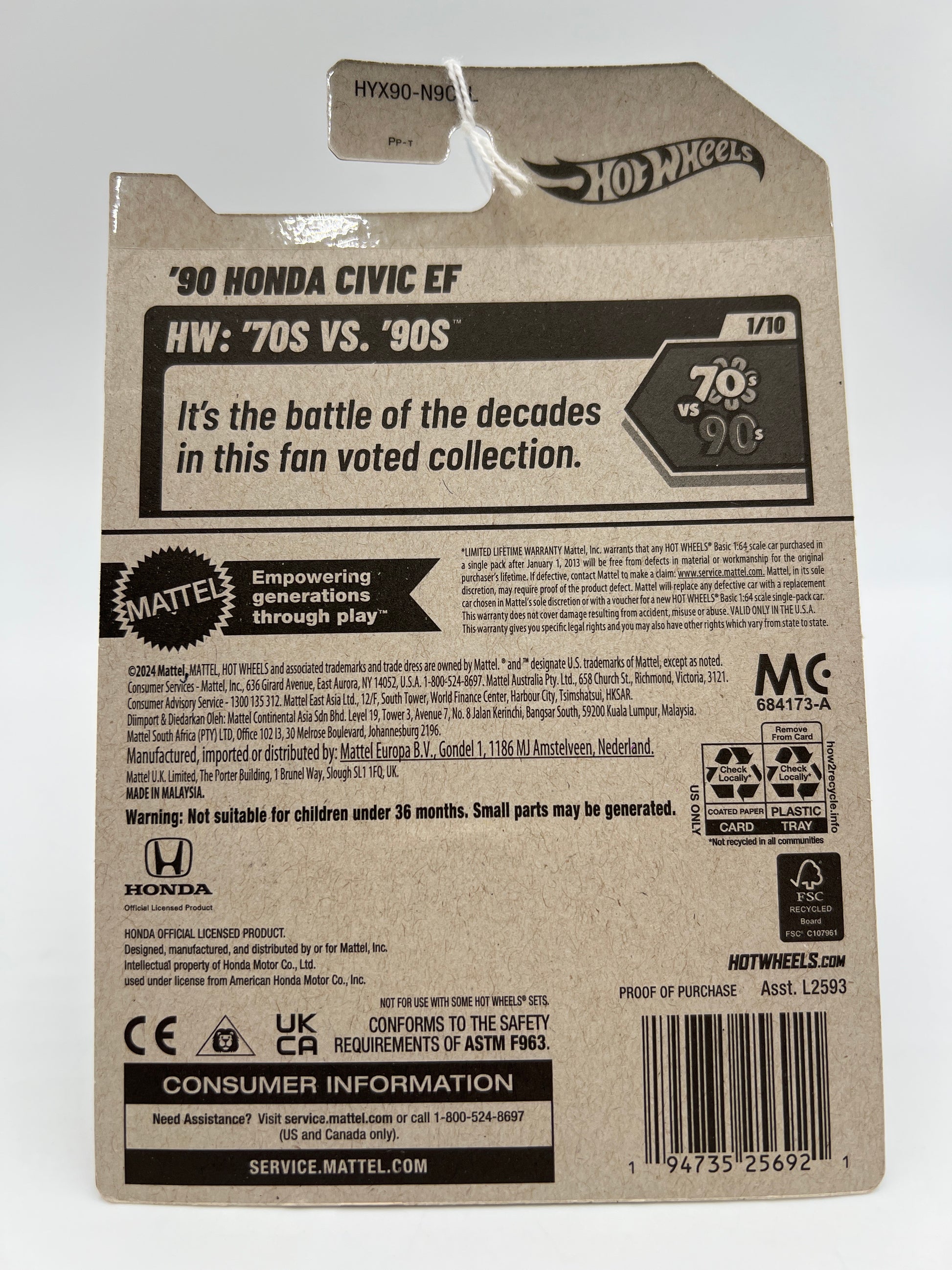 2025 Hot Wheels L Case 70s Vs 90s #28 90 Honda Civic EF Green 77B