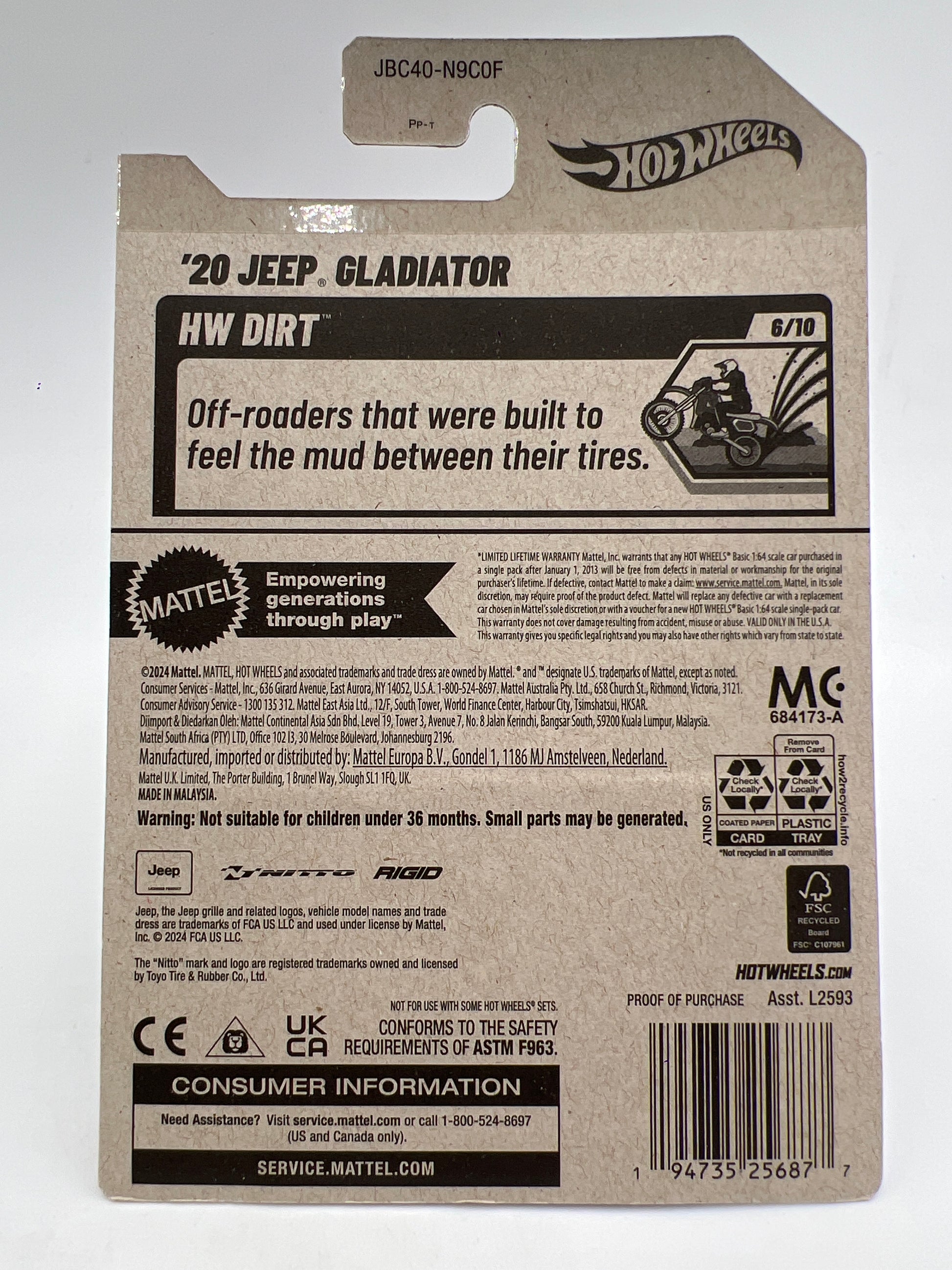 2025 Hot Wheels Super Treasure Hunt #130 20 Jeep Gladiator Nitto W/Protector