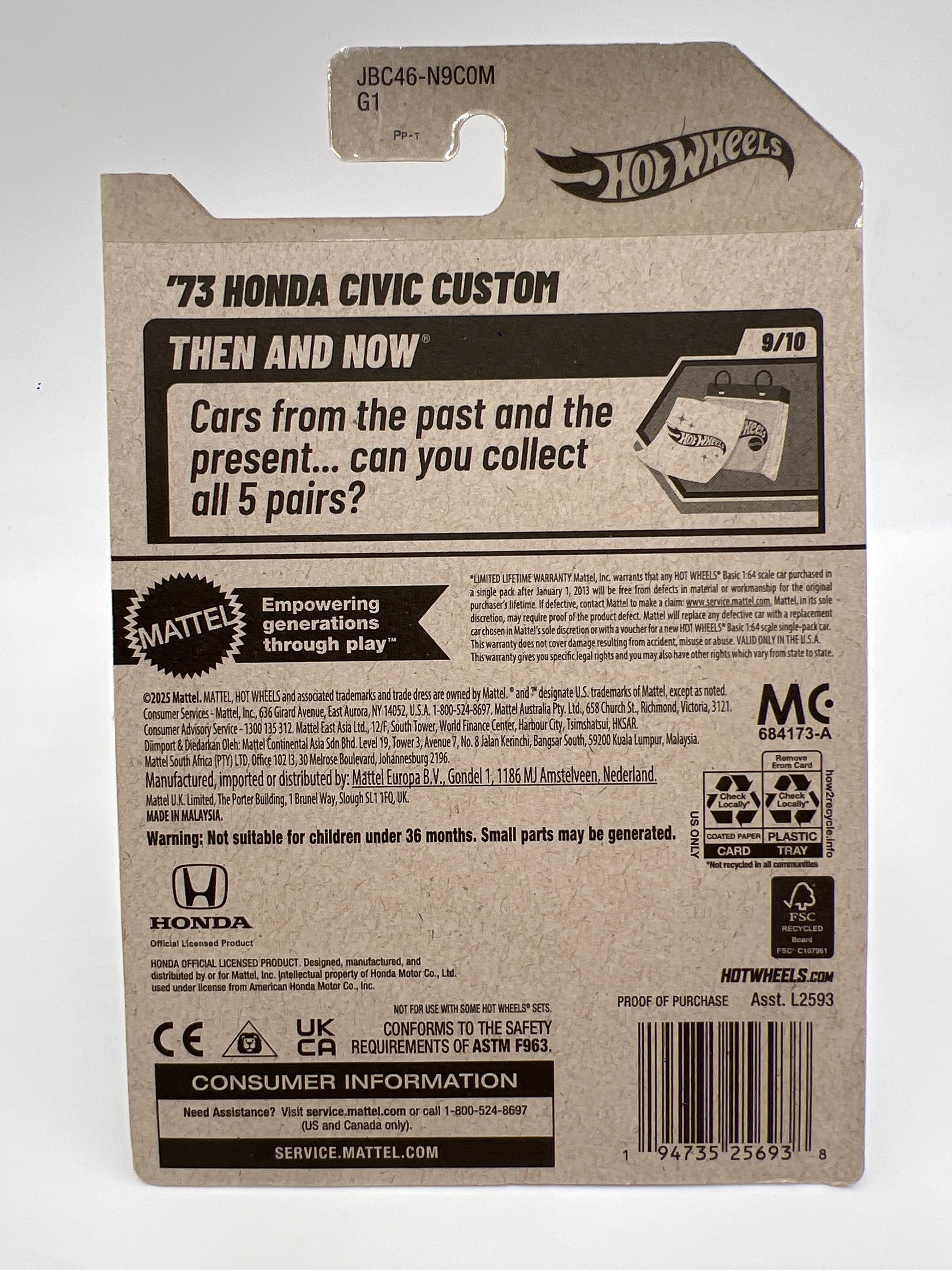 2025 Hot Wheels Super Treasure Hunt #231 73 Honda Civic Custom Red W/Protector