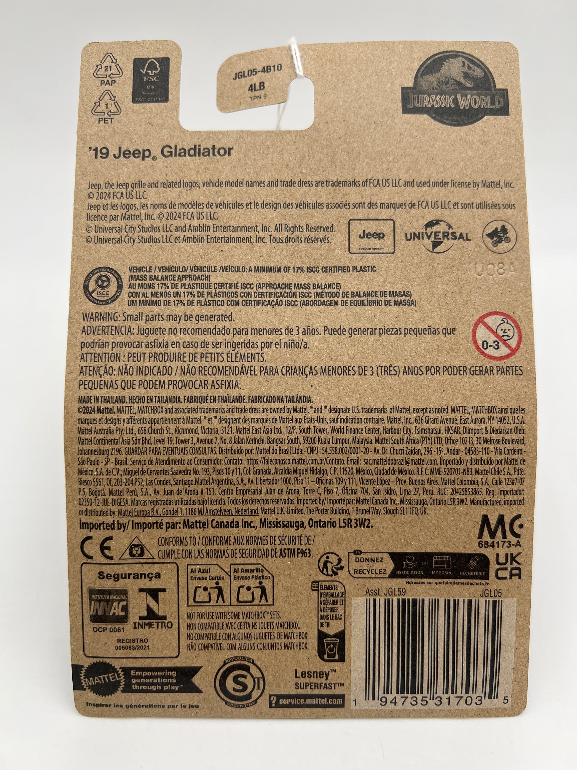 2025 Matchbox Jurassic World Rebirth 19 Jeep Gladiator 161H