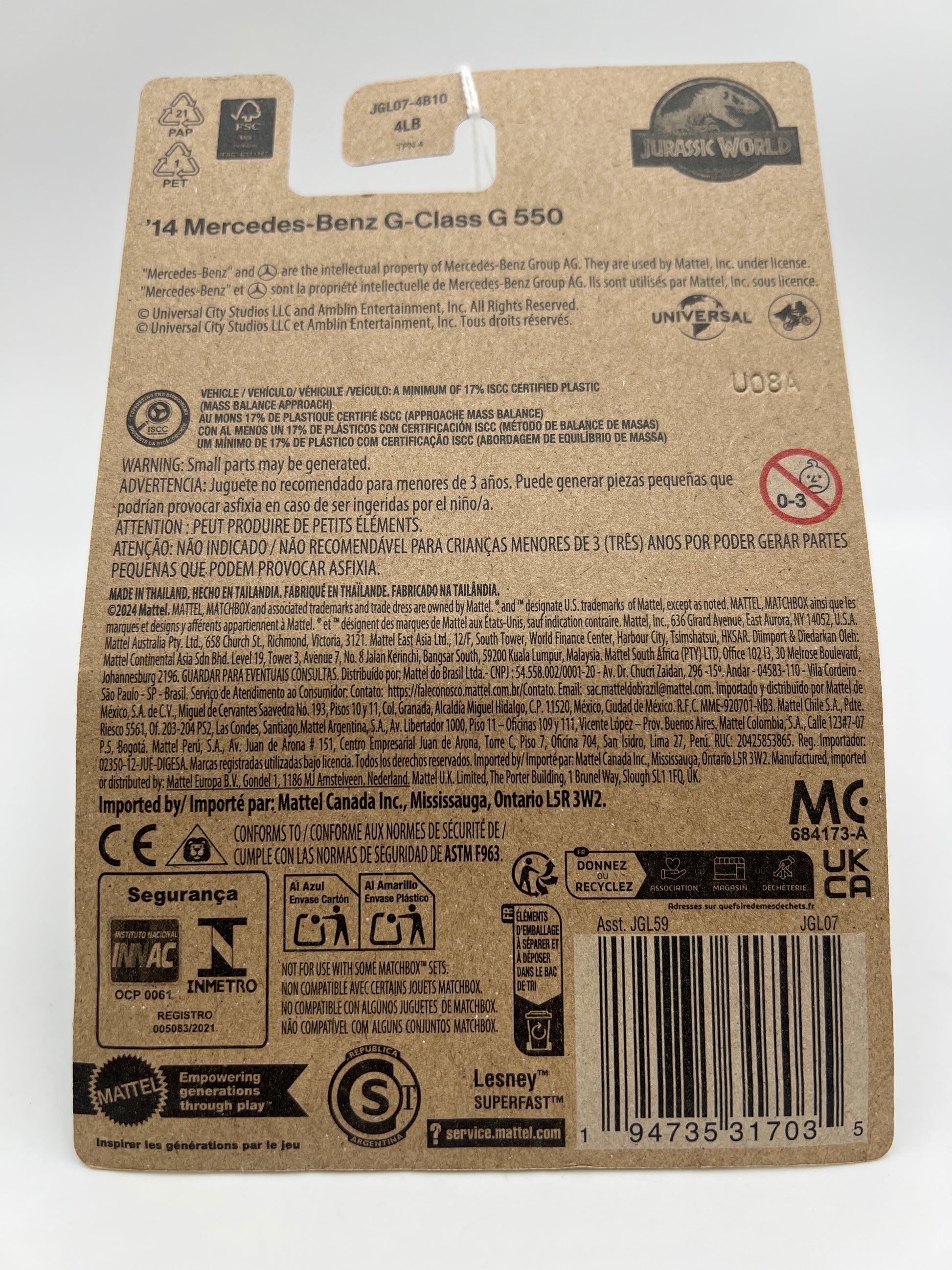 2025 Matchbox Jurassic World Rebirth 14 Mercedes-Benz G-Class G 550 White 161E