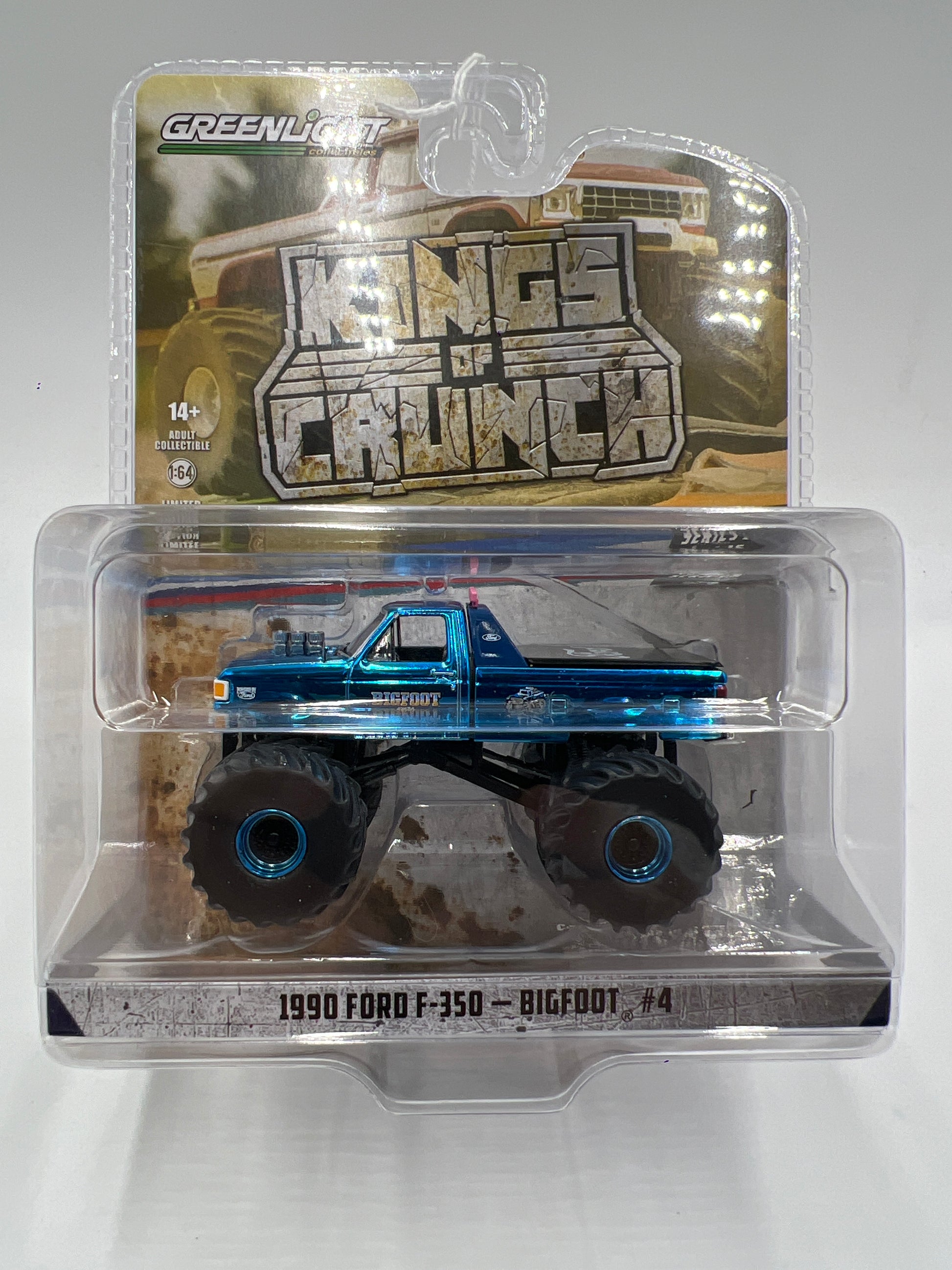 Greenlight Kings of Crunch Series 16 Walmart CHASE 1990 Ford F-350 Bigfoot #4 Chrome Blue